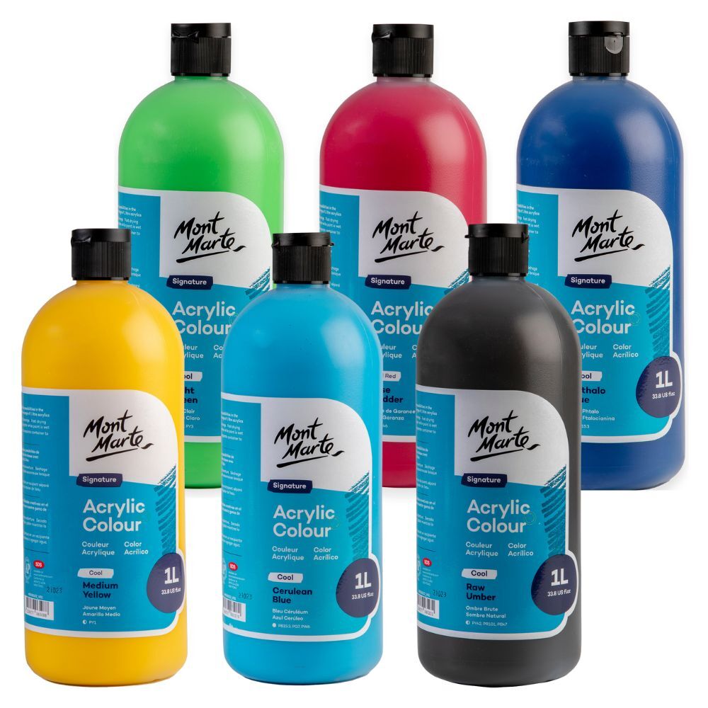 6 x Mont Marte Signature Acrylic Paint Squeeze Bottle 1L | Cool Colours