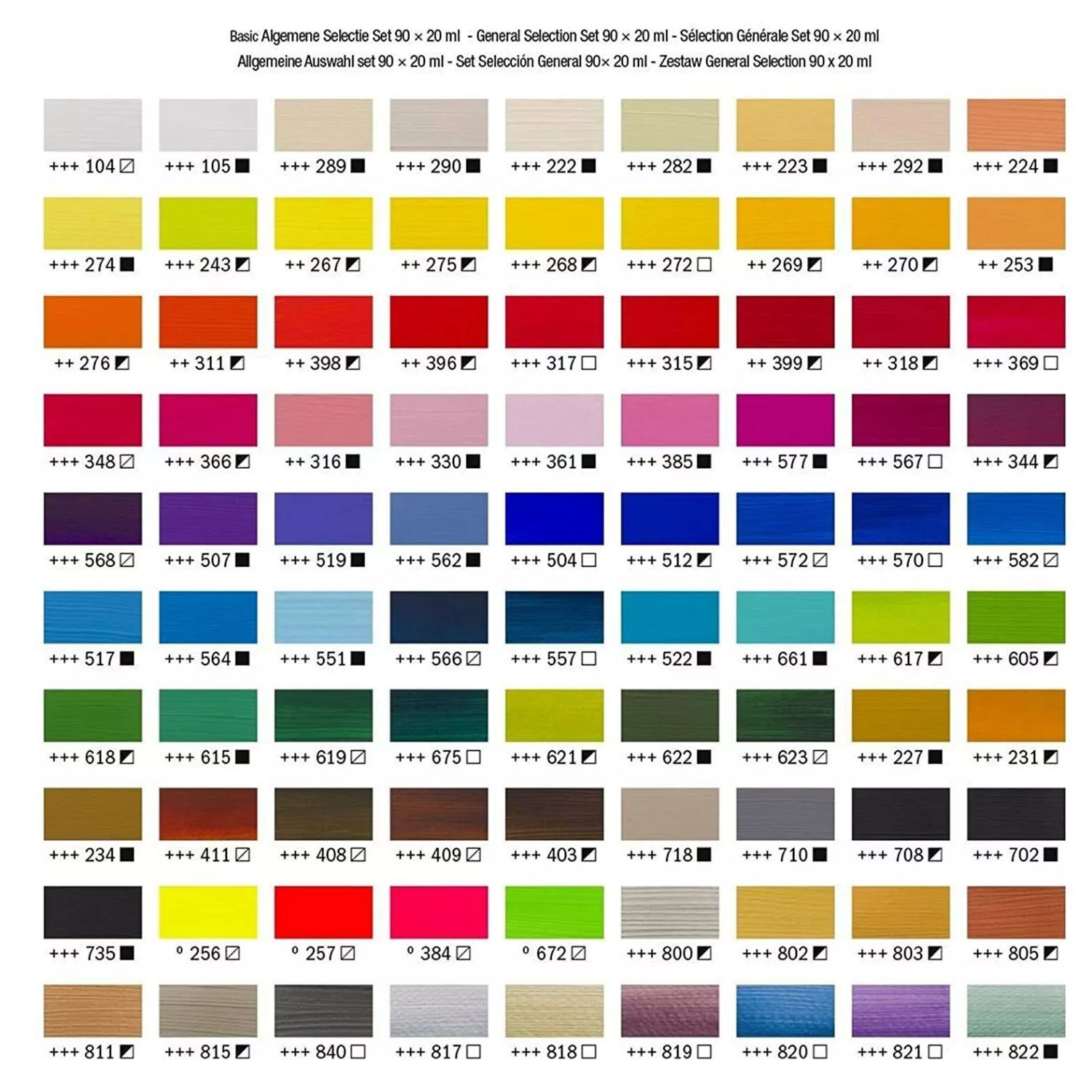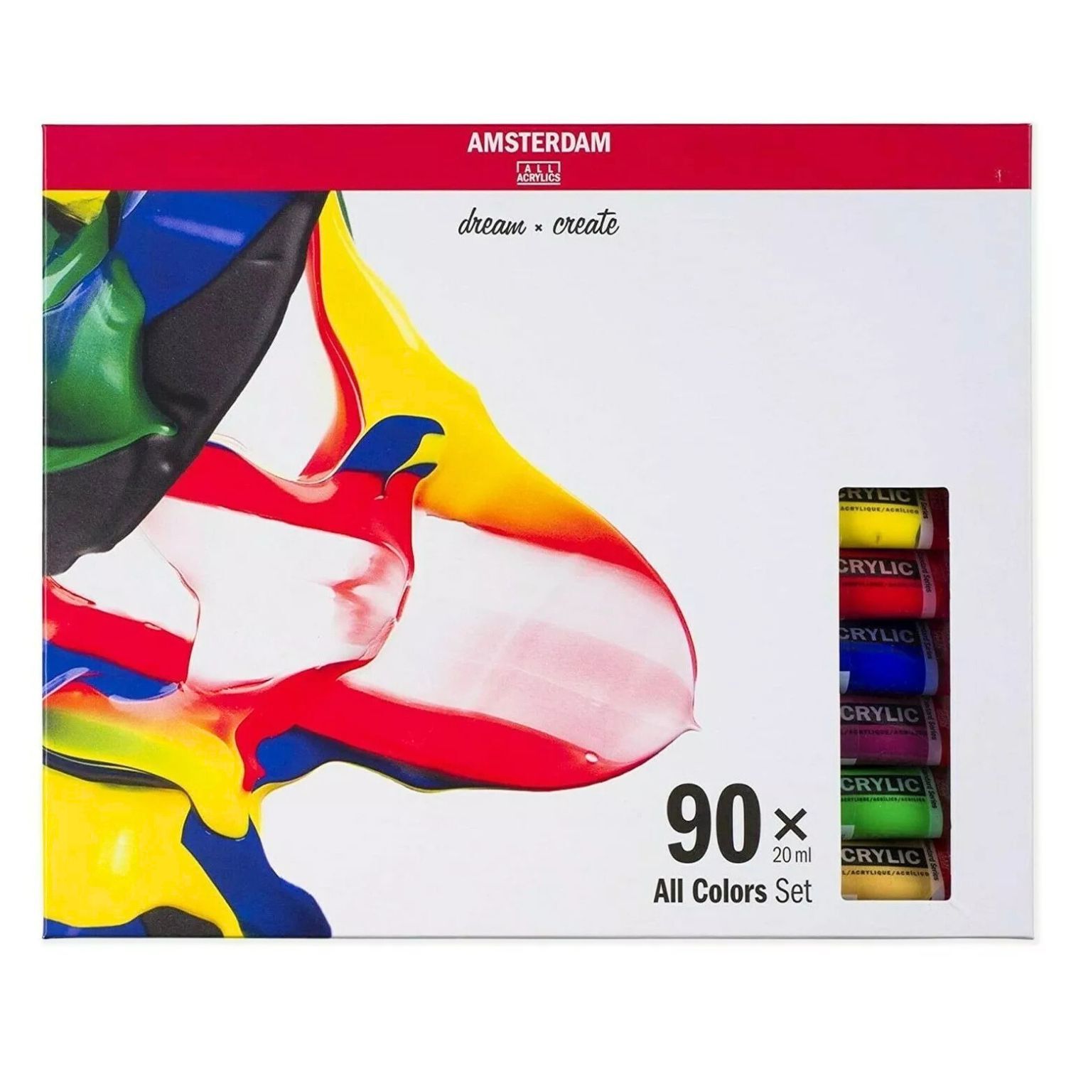 The Amsterdam Acrylic Paint Set 90 x 20ml set contains all 90 colours, including the specialties range metallic, pearl and reflex finishes.