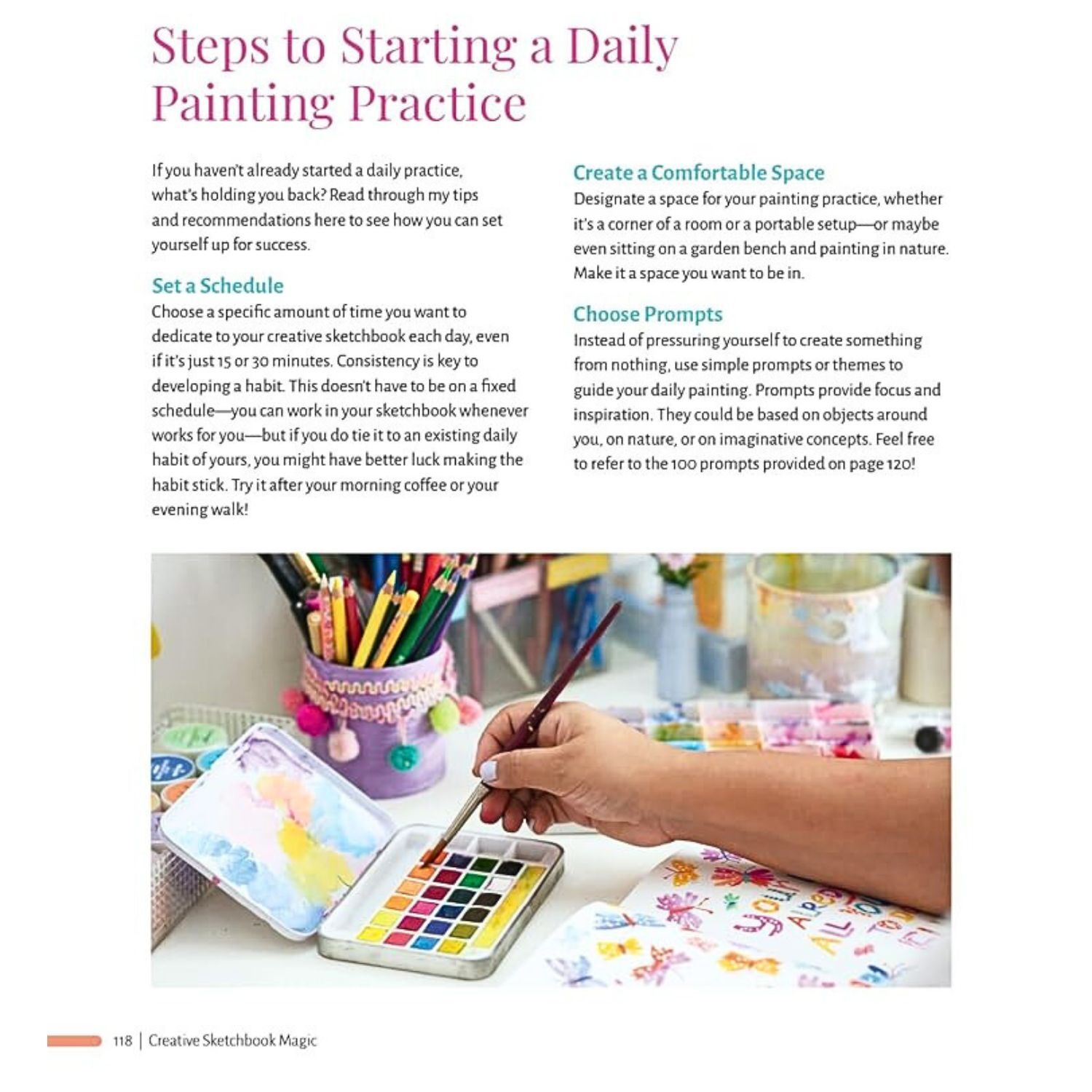 Beyond the tutorials, you’ll find helpful tips on essential supplies, guidance on colour palettes and colour mixing, plus 100 prompts to inspire ongoing creativity. Become more inspired and elevate your skills as you create art daily and experience the magic of making art in your sketchbook.