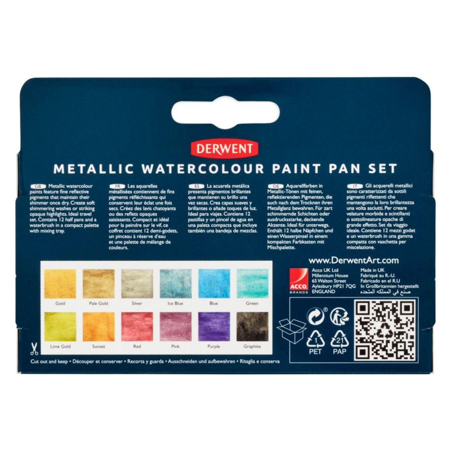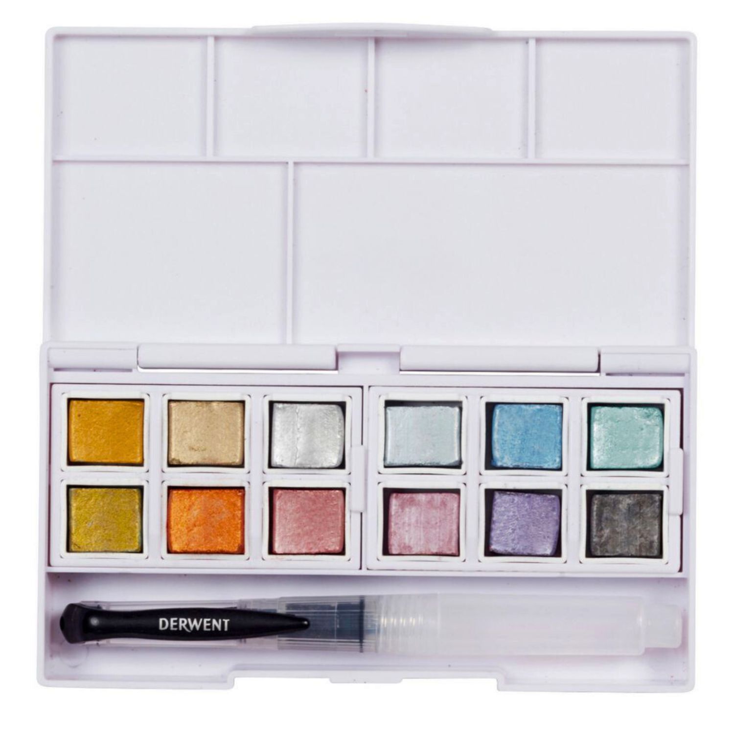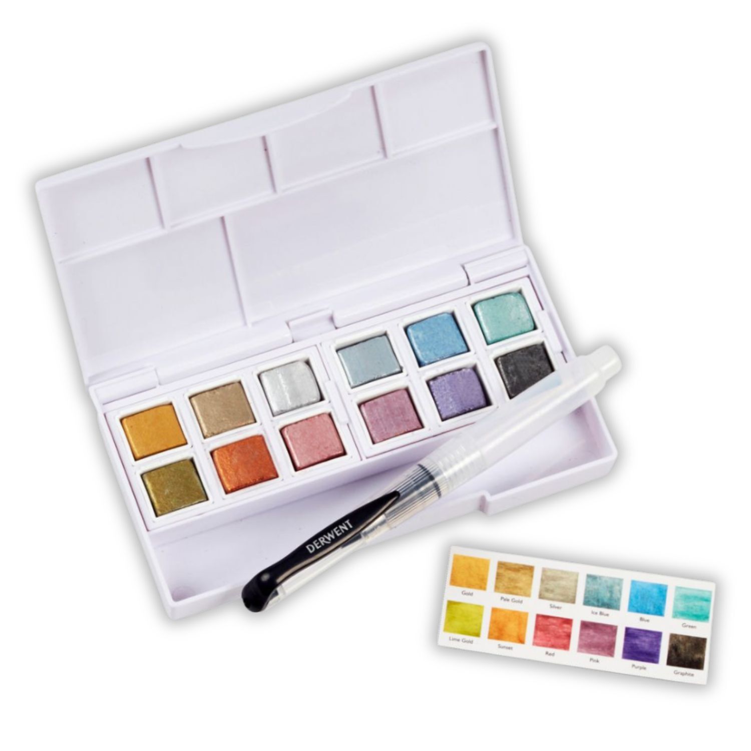 Derwent Metallic Watercolour 12 Pan Paint Travel Set - New version!