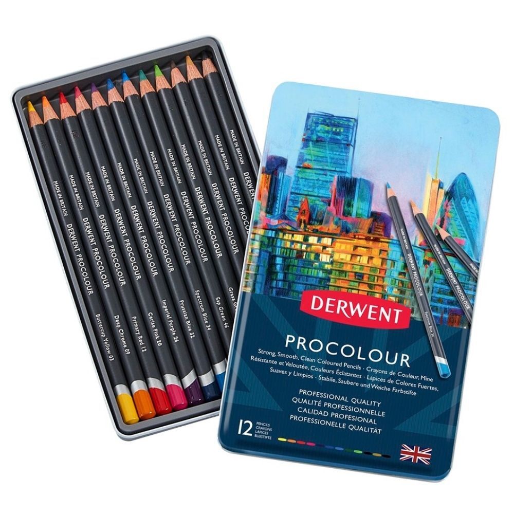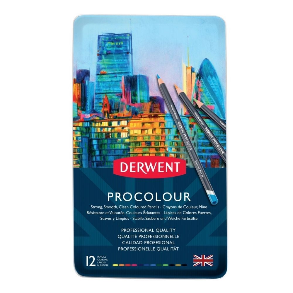 This tin of 12 Derwent Procolour Pencils includes the following colours: