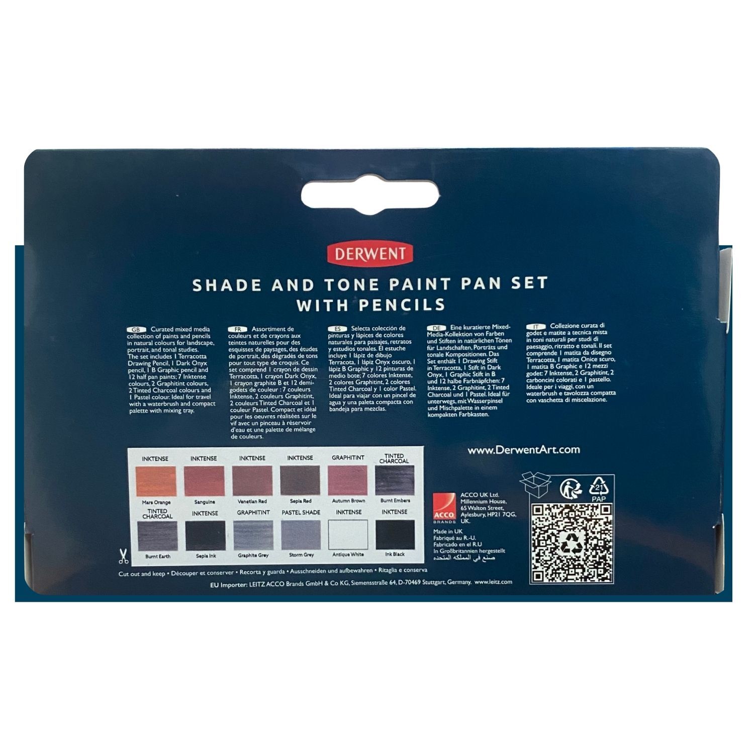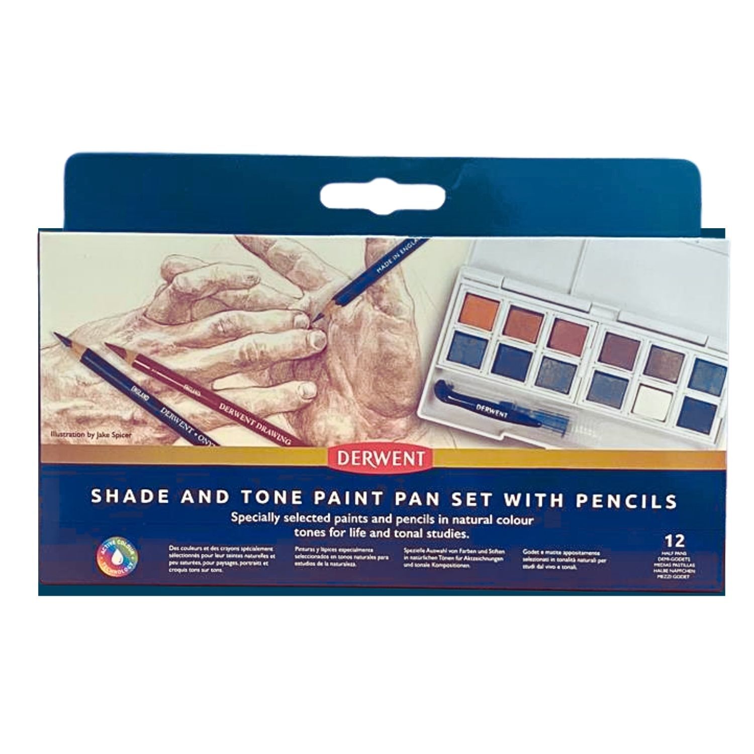 Derwent Shade & Tone Paint Pan Set with Pencils – 12 Professional Colours
