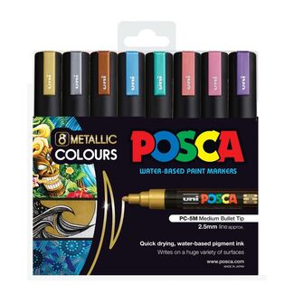 Uni Ball Posca Metallic Paint Pens 2.5mm PC5M 8 Pack - Assorted Colours