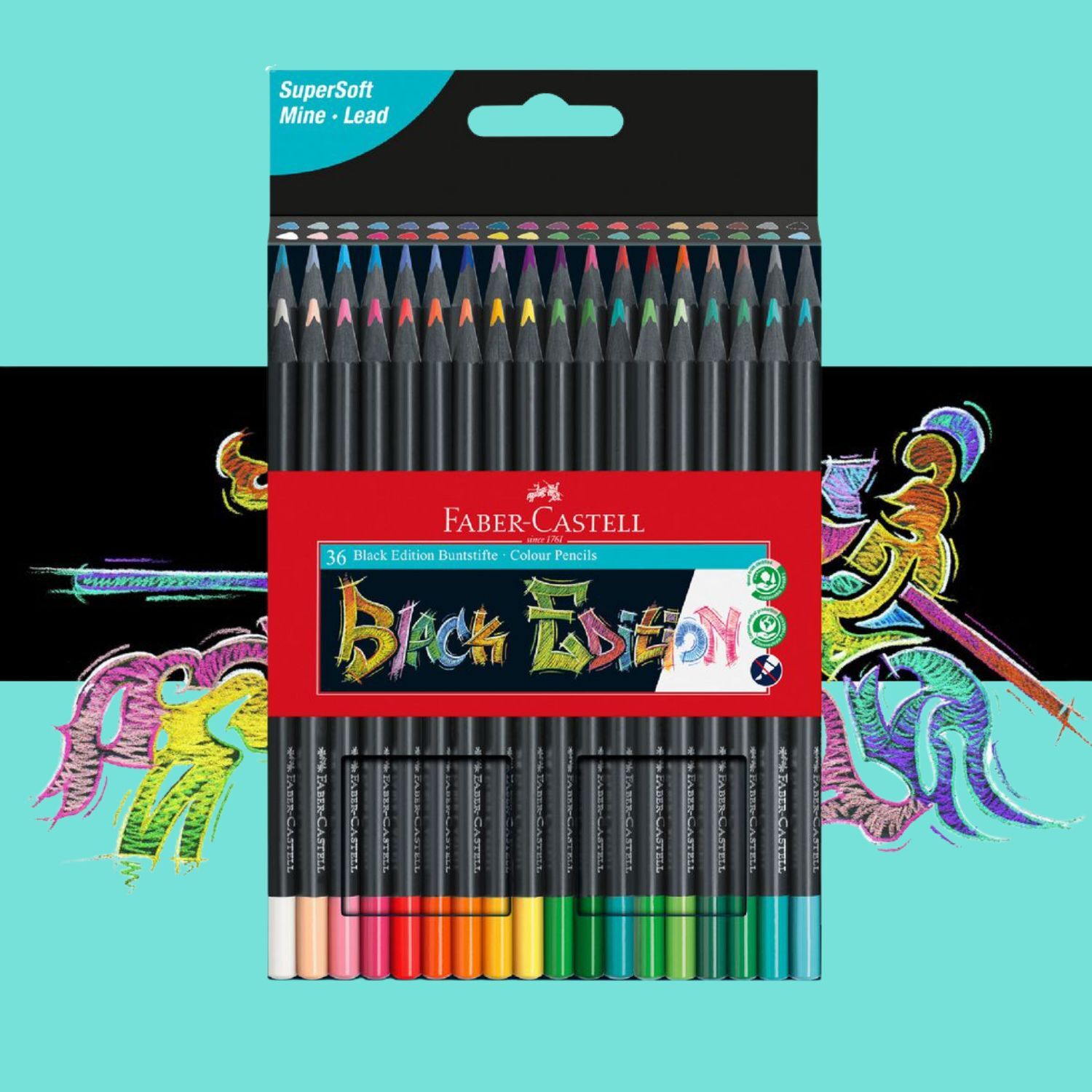 Faber-Castell Black Edition Coloured Pencils 36 pc — Brilliant Colour for Light and Dark Paper