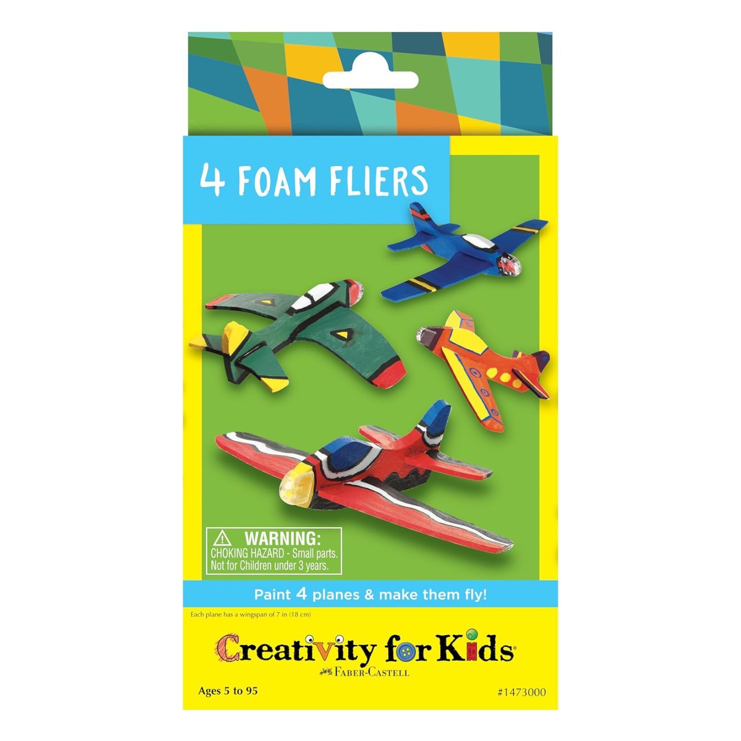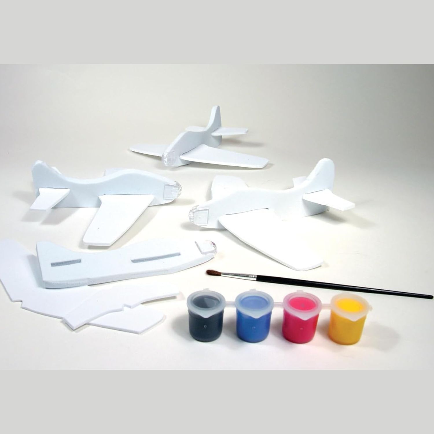 Comes with everything you need! Includes 4 paint colours, paint brush and foam cutouts to create 4 aeroplanes.