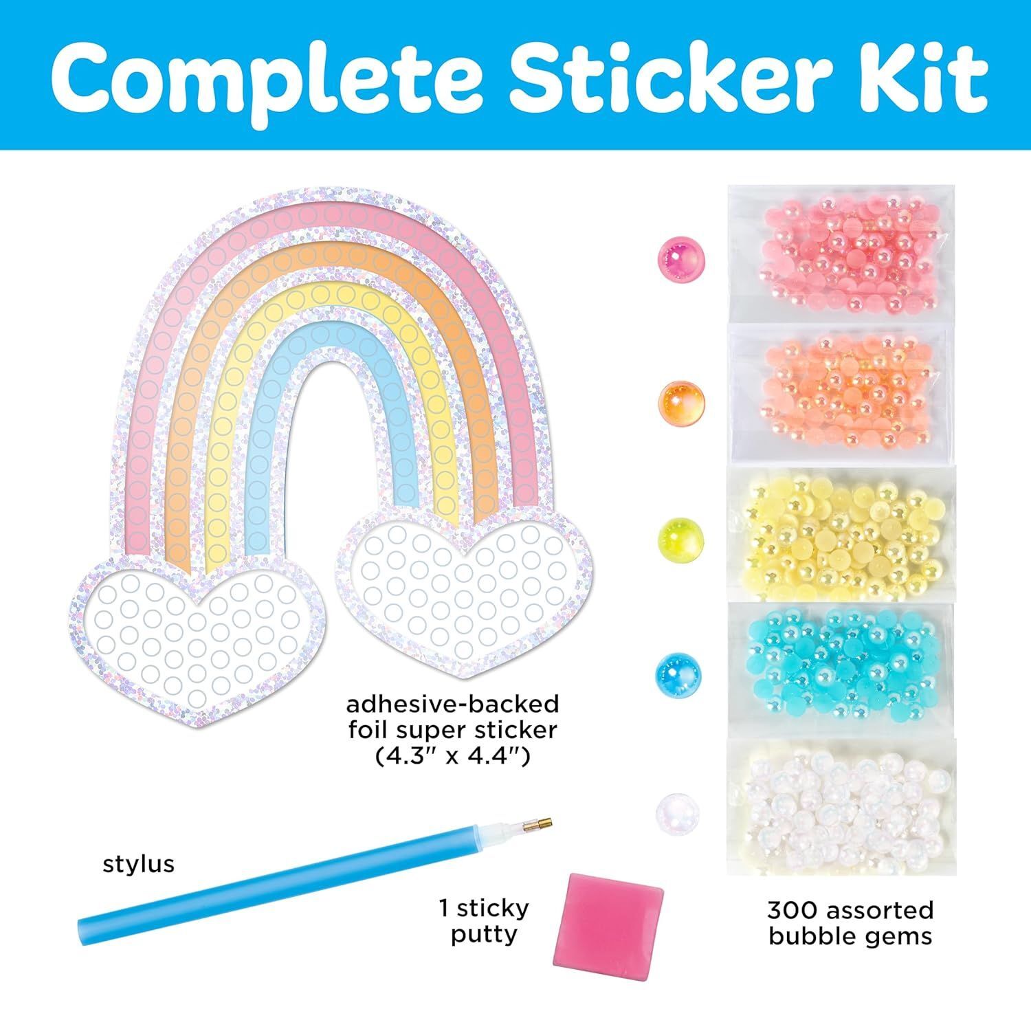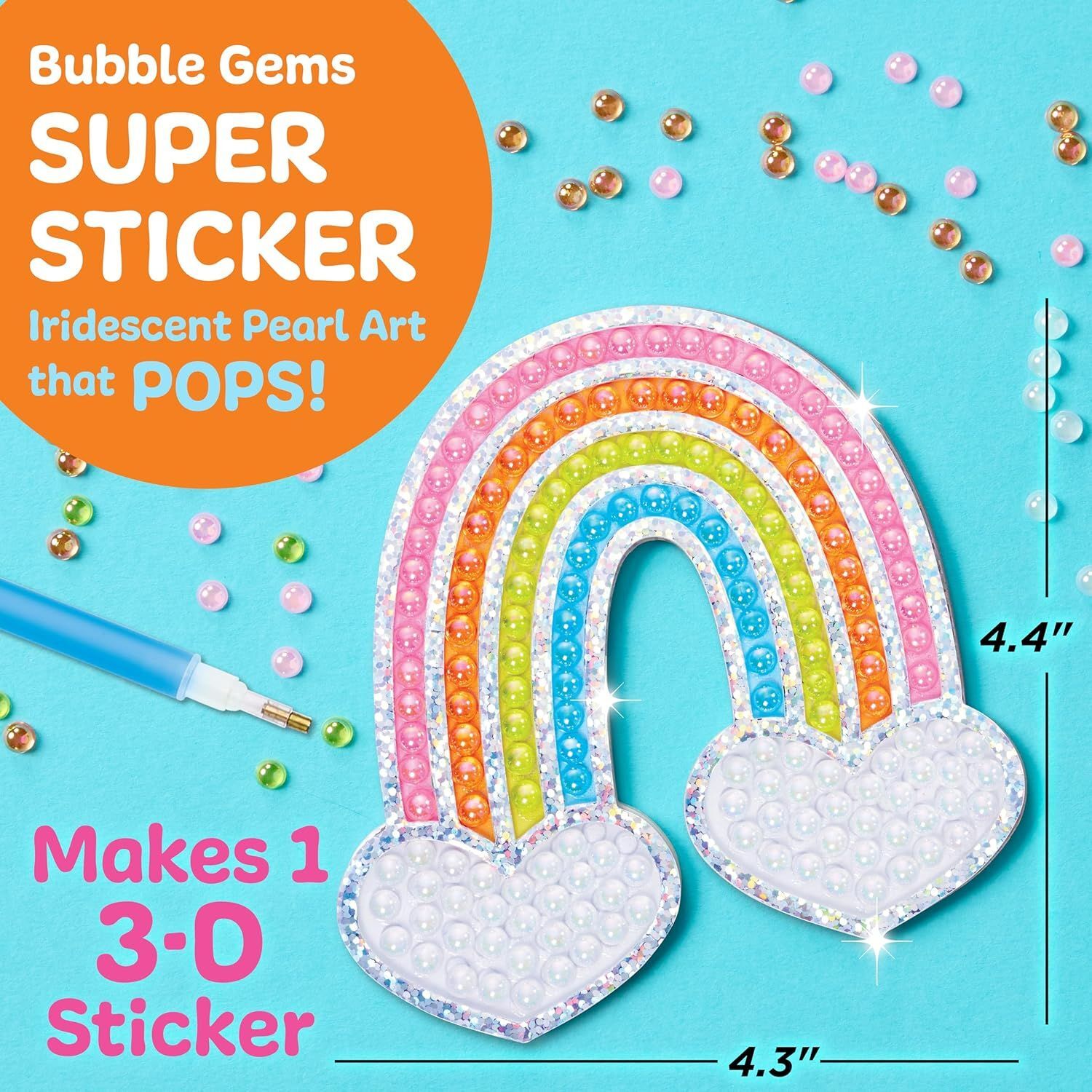 Each kit features a large, pre-printed Super Sticker design and hundreds of shimmering Bubble Gems in a range of vibrant colours. The gems are easy to pick up and place using the included stylus, making it simple for kids to decorate their artwork without glue or mess. Just follow the colour guide, layer your gems, and watch your creation sparkle!