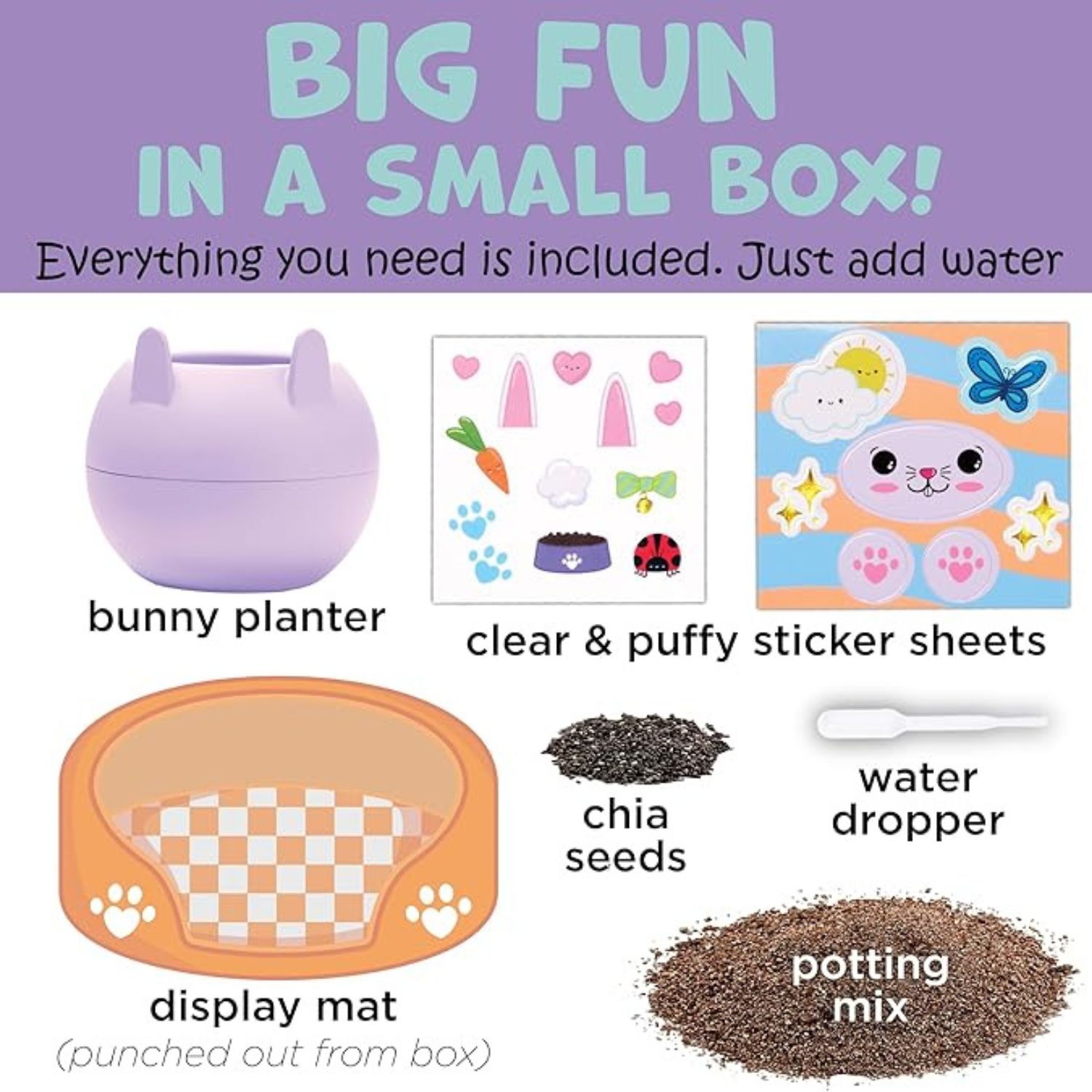 Create your own Bunny Garden and bring your plant pet to life with this delightful craft kit. Personalise your kawaii-inspired bunny planter with cute sticker faces, floppy ears, tails, and fun 3D accessories, then plant the chia seeds and watch them sprout in just a few days. Perfect for kids aged 6 to 8, this all-in-one activity combines creativity, gardening, and imaginative play, making it one of the most charming craft toys for girls who love animals and art. The kit includes chia seeds that sprout quickly and a nutrient-rich potting mix, making indoor gardening easy while encouraging confidence, responsibility, and a love of nature.