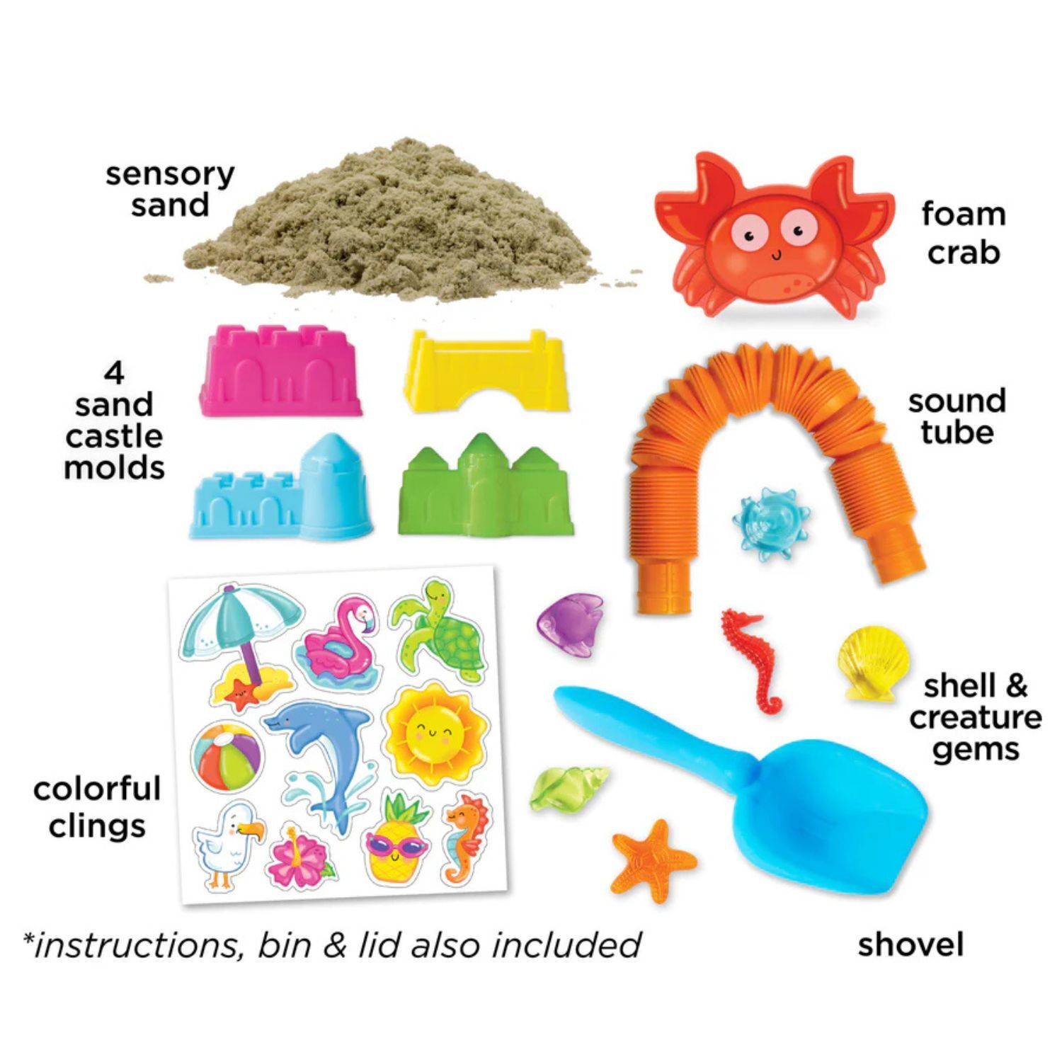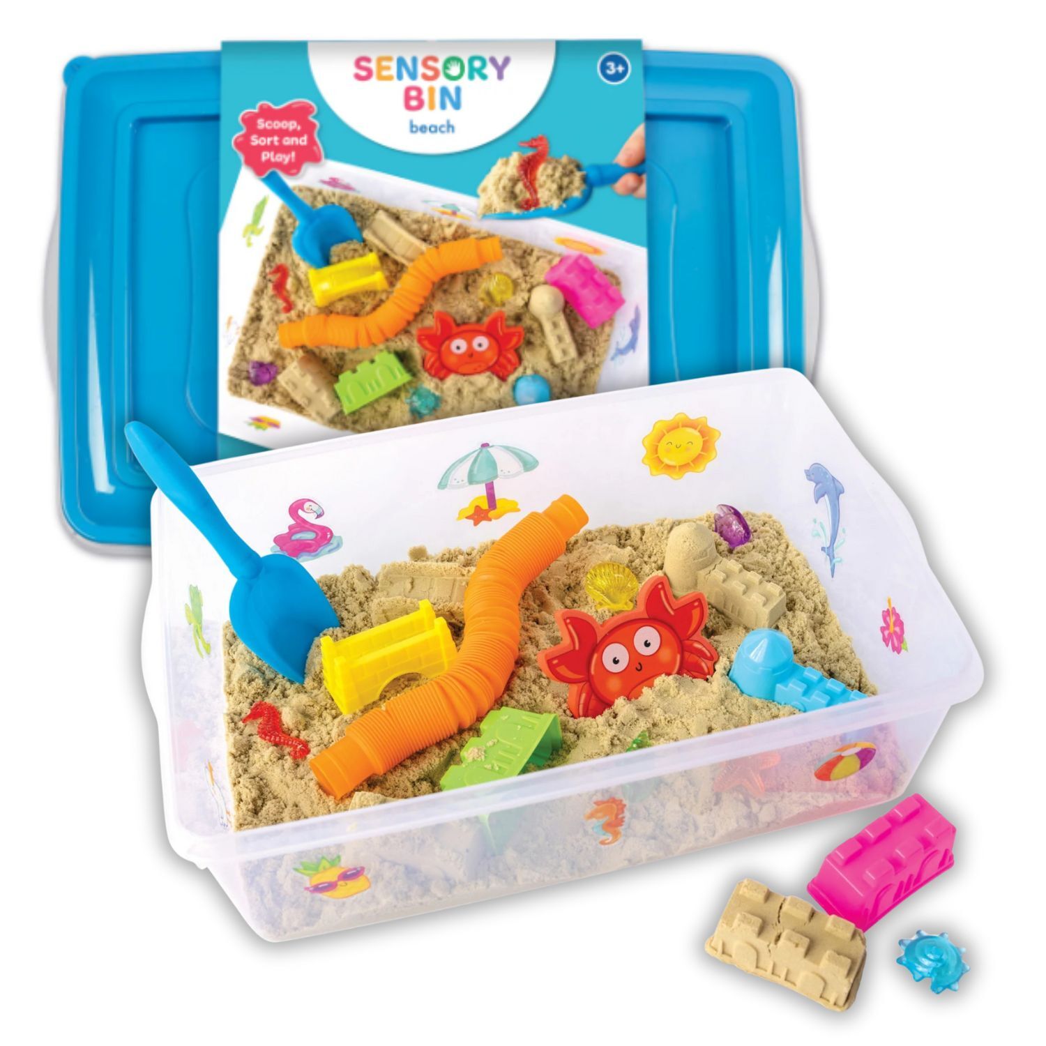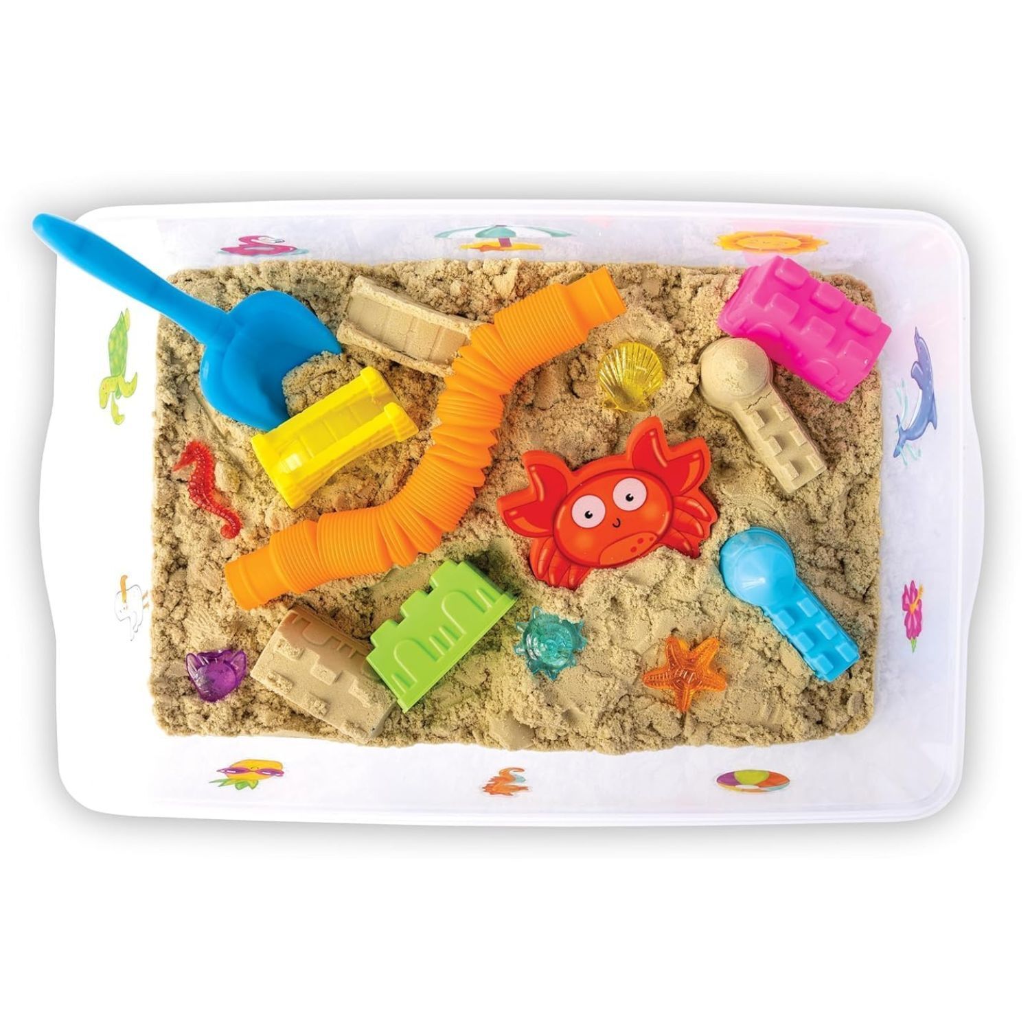 Includes sensory sand, shells, sea animals, and tools