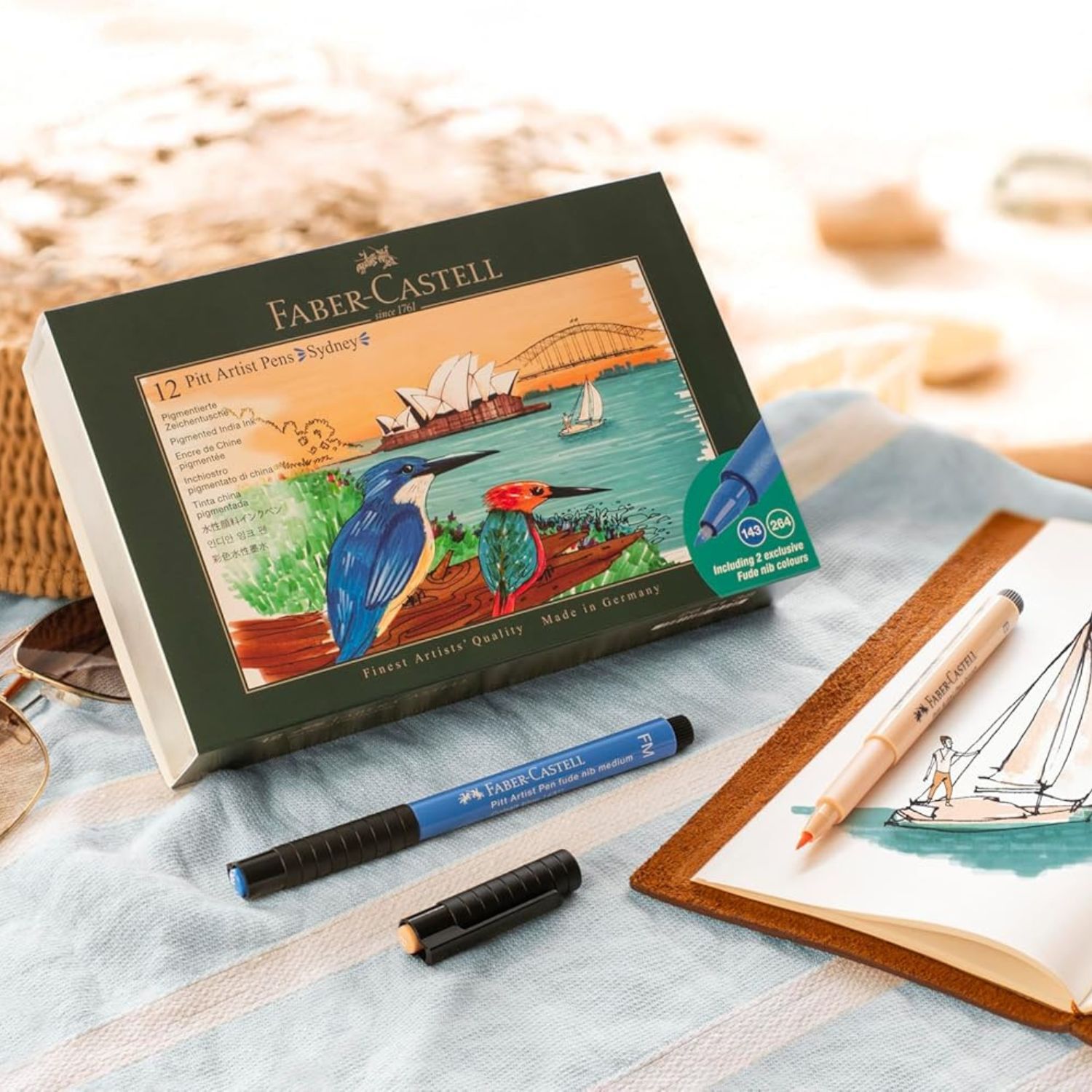 Celebrate the sun, sea, and creative spirit of Australia with the Faber-Castell India Ink Pitt Artist Pen Set – Sydney. Inspired by Sydney’s coastal energy and vibrant light, this set features a refreshing palette of bright and breezy tones that bring warmth and clarity to every artwork.