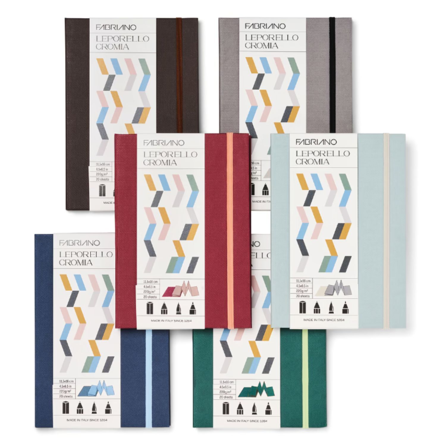 Compact and travel-friendly, this 11.5 x 16 cm notebook includes 20 sheets of 220 gsm paper, available in six stunning colours. Whether you’re sketching, journaling, or experimenting with mixed media, the Fabriano Leporello Cromia is the perfect companion for creativity on the move.