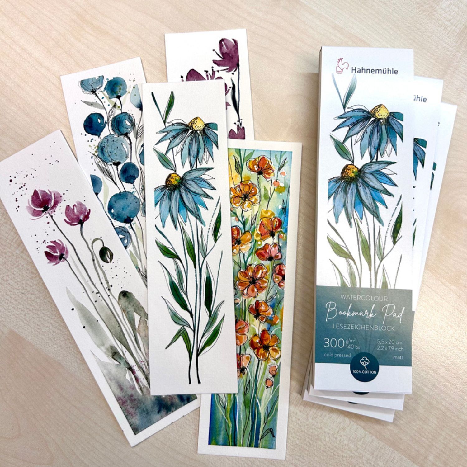 The pre-cut bookmarks (5.5 x 20 cm) are made from cold pressed, surface sized Hahnemühle Expression Watercolour Paper, renowned for its superior absorbency, strength, and fine texture. The heavyweight cotton paper easily handles multiple layers of paint and is ideal for watercolour, gouache, acrylic, ink, or fine liner work. Its sizing ensures masking tape and fluid lift cleanly without tearing the surface, perfect for precise and expressive artwork.