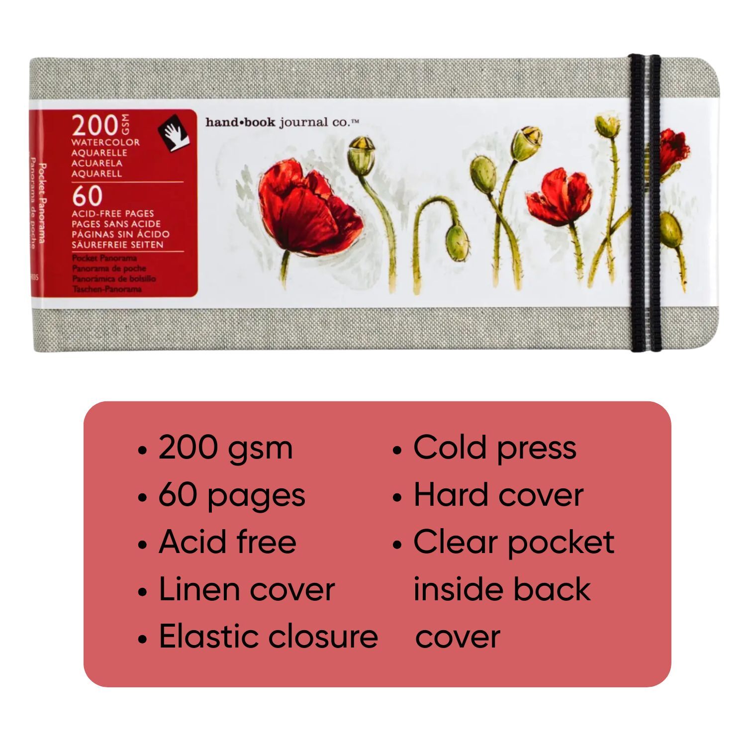 Delight your arty friend or spoil yourself with the Hand Book Co. Travelogue Watercolour Journal - Pocket Panorama. Designed for artists on the move, this compact, beautifully bound sketchbook is perfect for plein air painting, travel sketching, and everyday creativity.