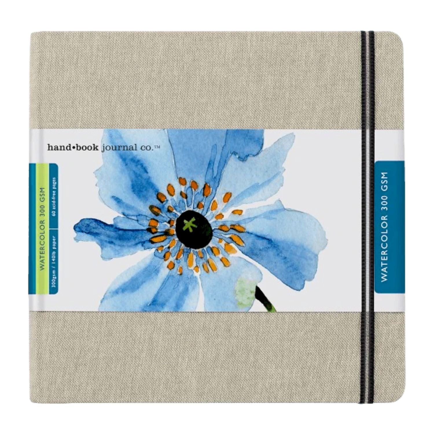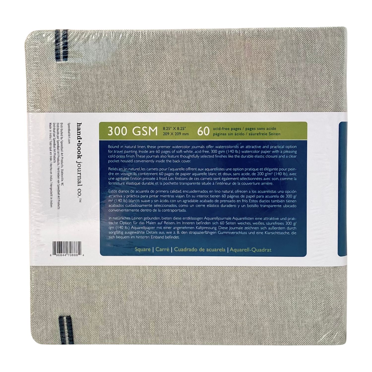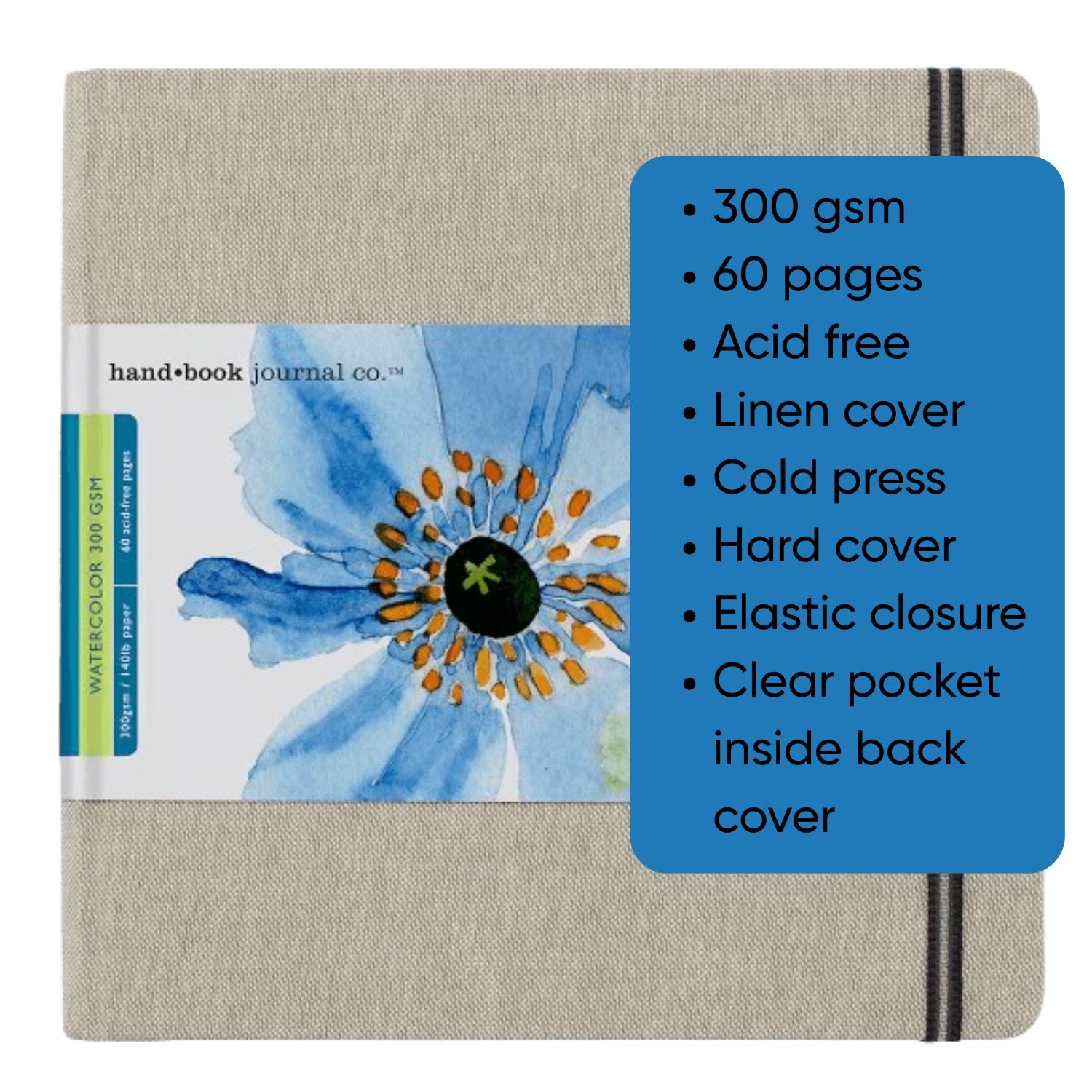 Meet your new favourite sketchbook. The Hand Book Journal Co 'Travelogue' Linen Cover Watercolour Journal combines a compact, portable design with professional quality watercolour paper. At roughly 21 x 21cm, this square journal is perfect for painting outdoors, keeping a creative travel diary, or working in your studio.