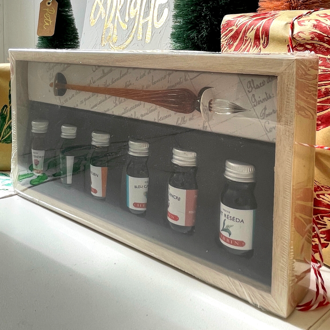 Herbin Dip Pen & 6 Ink Set In Wooden Box