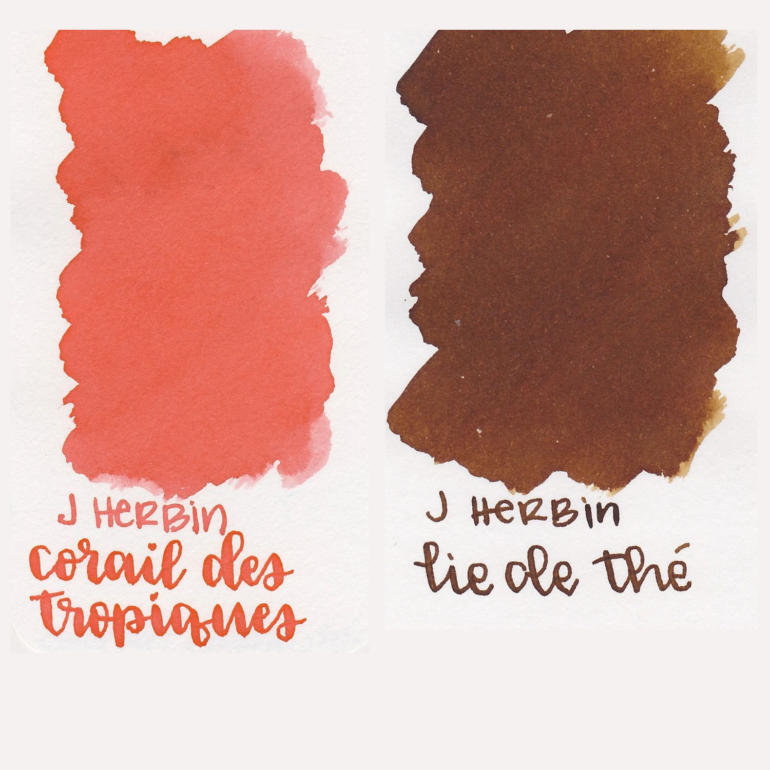 • 2 x Jacques Herbin Inks 10mls - Corail De Tropiques (Coral Pink) and Lie De The (Brown Tea)