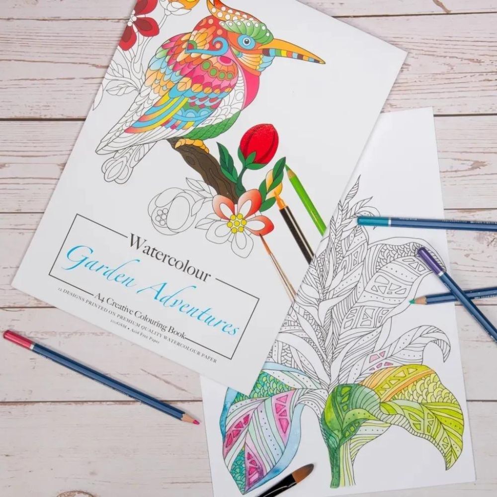Jasart Adult Watercolour Colouring Book A4 12 Sheets - Garden Adventures
