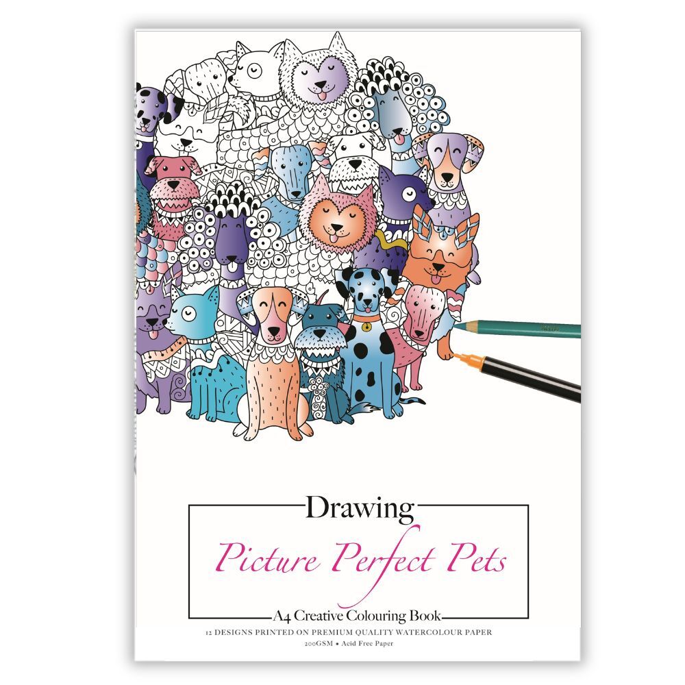 Jasart Adult Watercolour Colouring Book A4 12 Sheets - Picture Perfect Pets