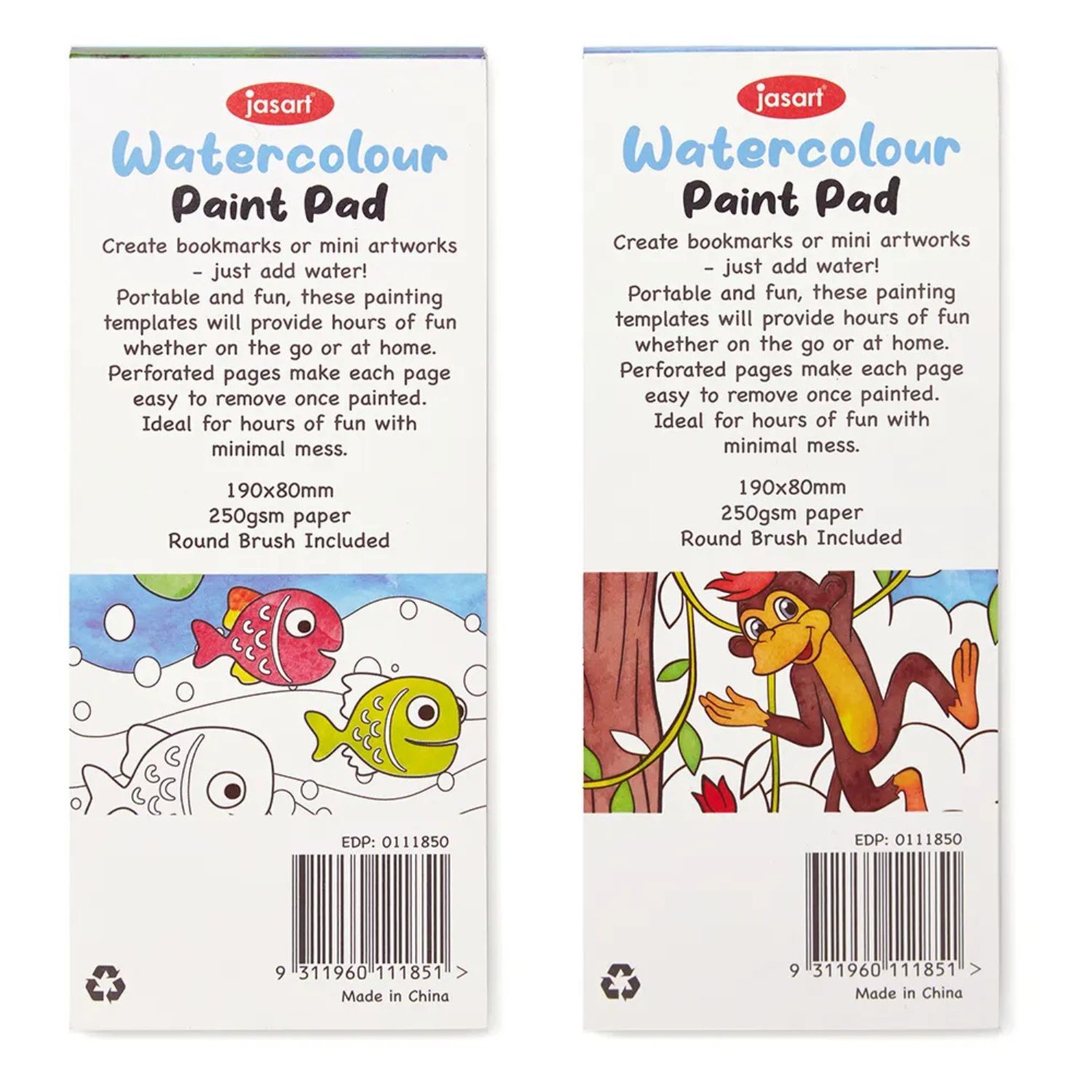 Jasart Watercolour Painting Cards contain 22 fun designs preprinted on watercolour paper, with clever paint pans on each page. Ideal for using at home or while travelling. The set is great for kids to make their own hand painted bookmarks.