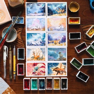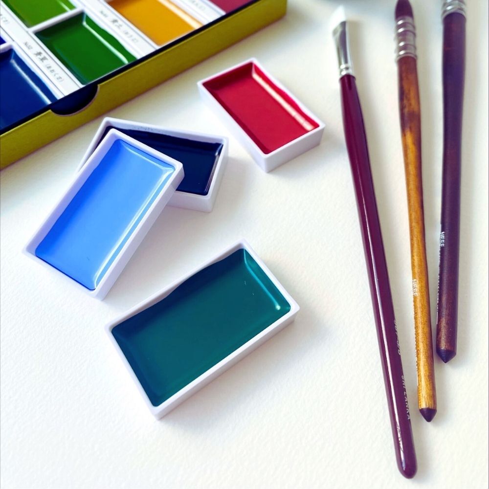 Traditional Japanese solid watercolours for professional artists and crafters.