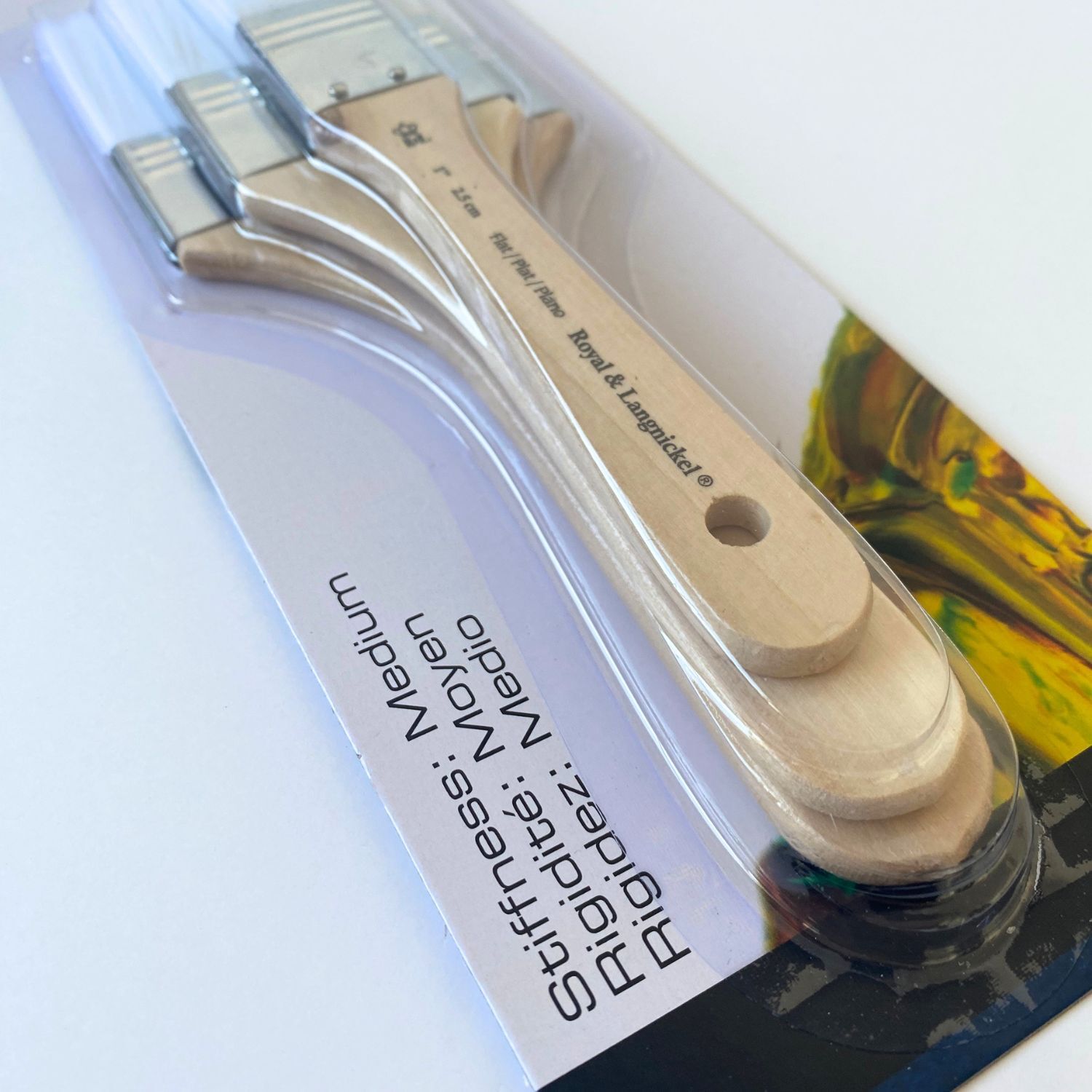 The soft white taklon bristles provide a smooth application of paint, minimising brush marks. These brushes feature medium stiff bristles and are ideal for priming surfaces, base coats, backgrounds, varnishing and covering large areas.