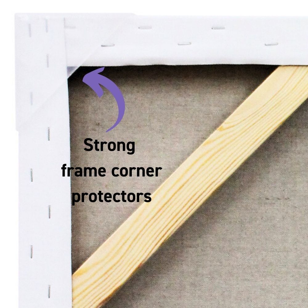 Transparent plastic corner protectors made so you can see the corner folds when selecting your canvas