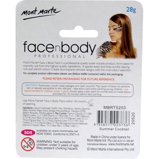 You’ve been waiting…. The New Mont Marte Face n Body Professional range is back and it's bigger and better than before. Formulated from the highest quality materials and cosmetic grade ingredients this range is ideal for every event!  Perfect for makeup artists, children's parties, school fetes & festivals, sports fanatics and more.