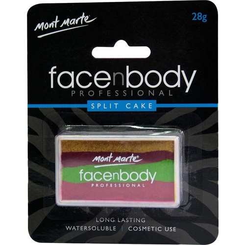 The New Mont Marte 28g Split cakes make face painting easy with a variety of one stroke applications. All of the products in the range are formulated for cosmetic use from the highest quality ingredients. The water-based paint applies easily and dries quickly leaving long lasting, rich and vibrant colour.