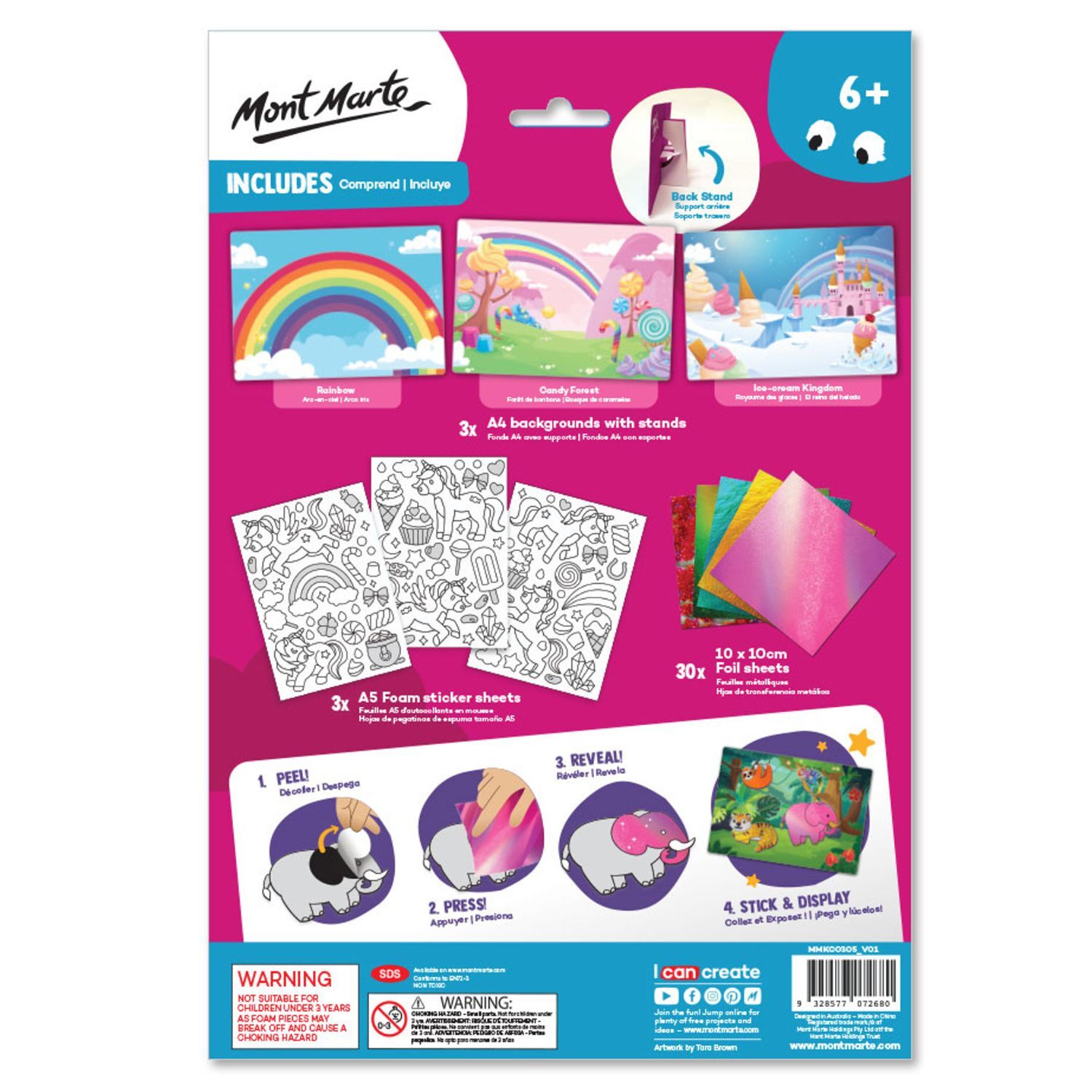 Step into a world of shimmer and sparkle with the Mont Marte Foil Creations 36pc – Unicorn Quest! This magical craft kit lets kids bring their unicorn dreams to life using dazzling foil sheets and enchanting designs. Watch as shimmering rainbows, majestic unicorns and glittering stars appear like magic with a simple rub and reveal technique.