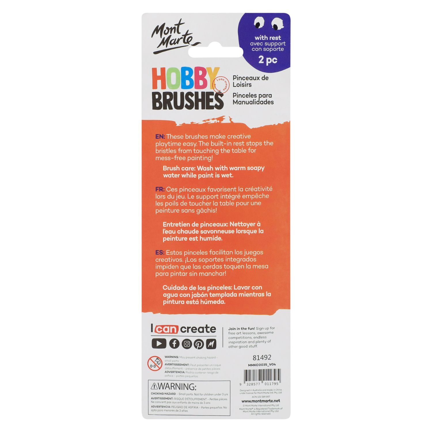Mont Marte Kids Colour Hobby Brushes with Rest - 2pc