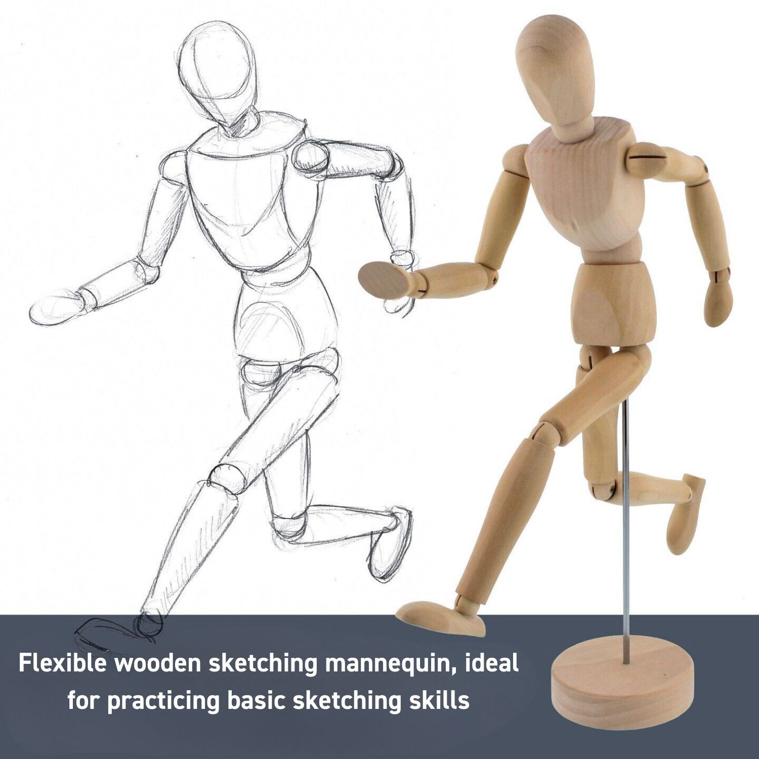 Crafted from smooth, durable wood and mounted on a stable base, this 30cm manikin is suitable for artists of all levels, from beginners learning figure drawing to experienced illustrators refining dynamic poses. It’s a valuable studio tool and a practical teaching aid for classrooms and creative spaces.