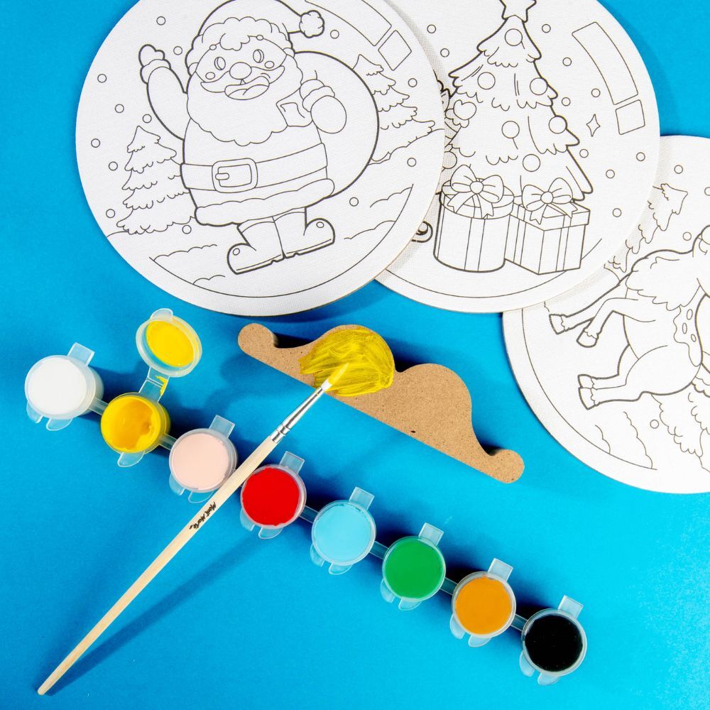 Supplied with eight vibrant paint colours and two paint brushes, this fun activity doubles as Christmas decorations for the home.