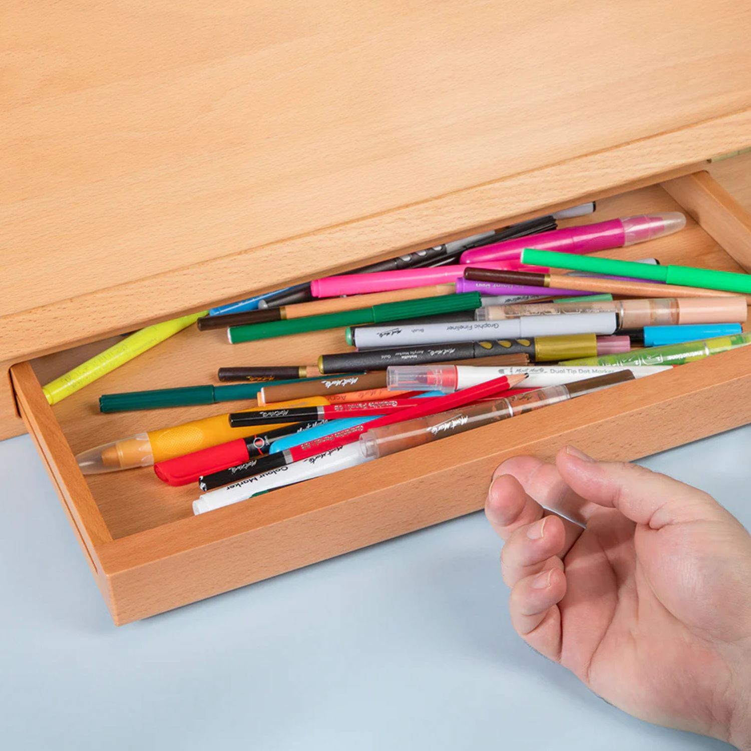 Drawer for storing pencils, brushes, paints, drawing accessories and more