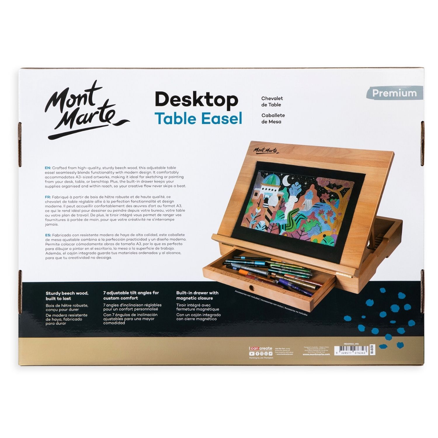 The Mont Marte Premium Desktop Table Easel is a versatile and practical choice for artists who want comfort, convenience and quality in one compact design. Ideal for home studios, classrooms and creative workspaces for children or adults.