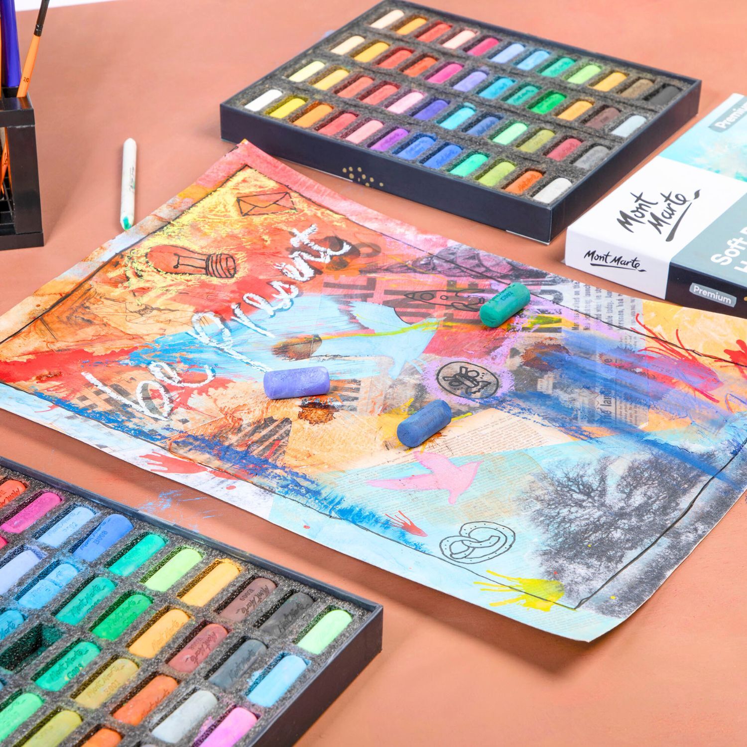This beautiful set of premium soft pastels from Mont Marte contains a range of radiant and subtle colours to delight any artist. Perfect for layering, blending and colour blocking, simply adding highlights or using in your mixed media works, these pastels are super soft and provide opaque coverage. Experiment with colour mixing for true colour combinations, to create any kind of art from landscapes, portraits, to abstract works. Finish with a fixative or spray varnish to protect your beautiful vibrant piece.
