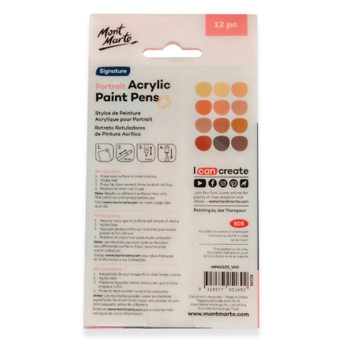 Mont Marte Signature Acrylic Paint Marker Set - Broad Tip 12pc - Skin Tones
