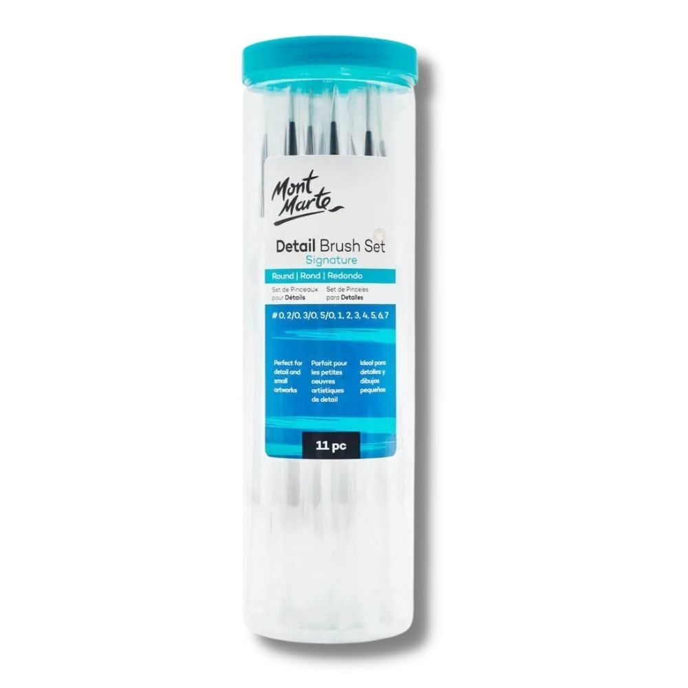 If you're looking to work in some fine lines or detail into your next project, the Mont Marte Detail Brush Set 11pc is up for the job!