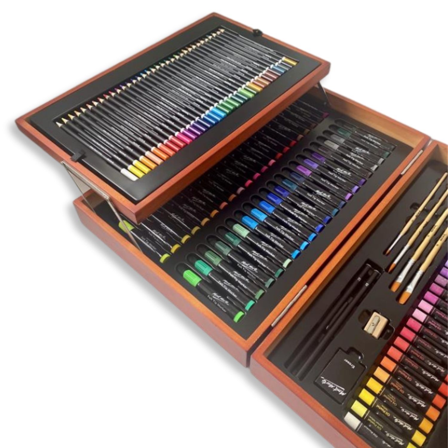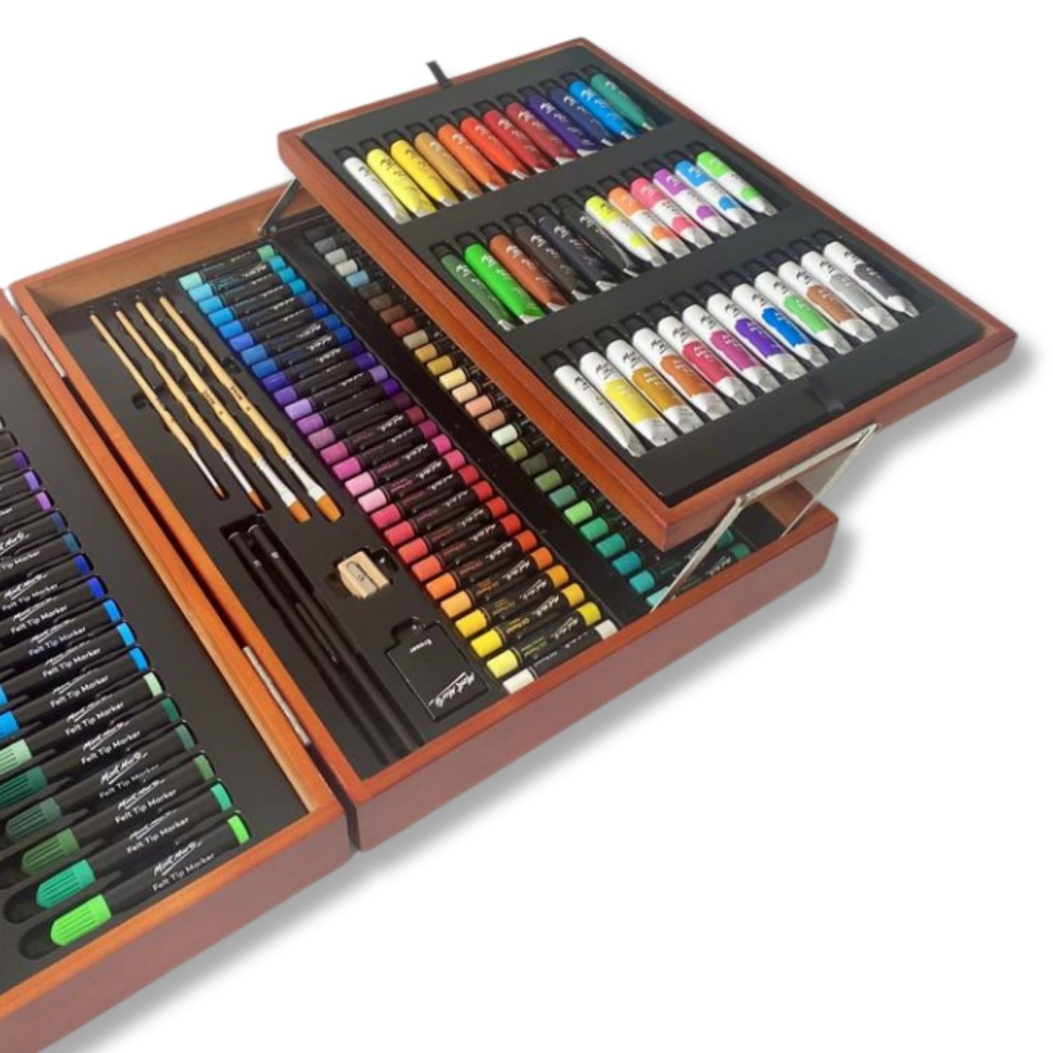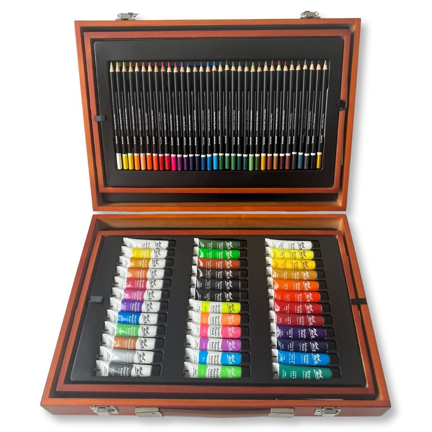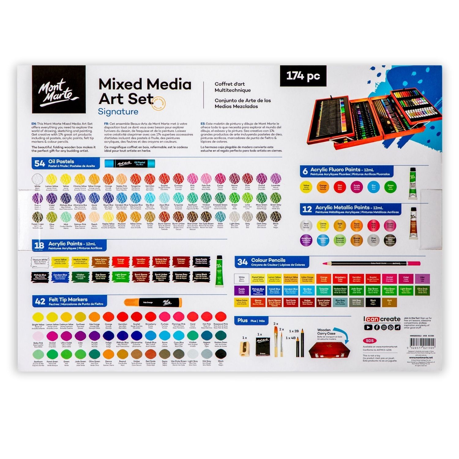 Building on the popularity of Mont Marte’s mixed media sets, this expanded 174-piece collection allows artists to experiment with sketching, colouring, painting and mixed media techniques across a variety of surfaces. Neatly organised in a durable carry case, it’s perfect for home use, classrooms, travel or gifting.