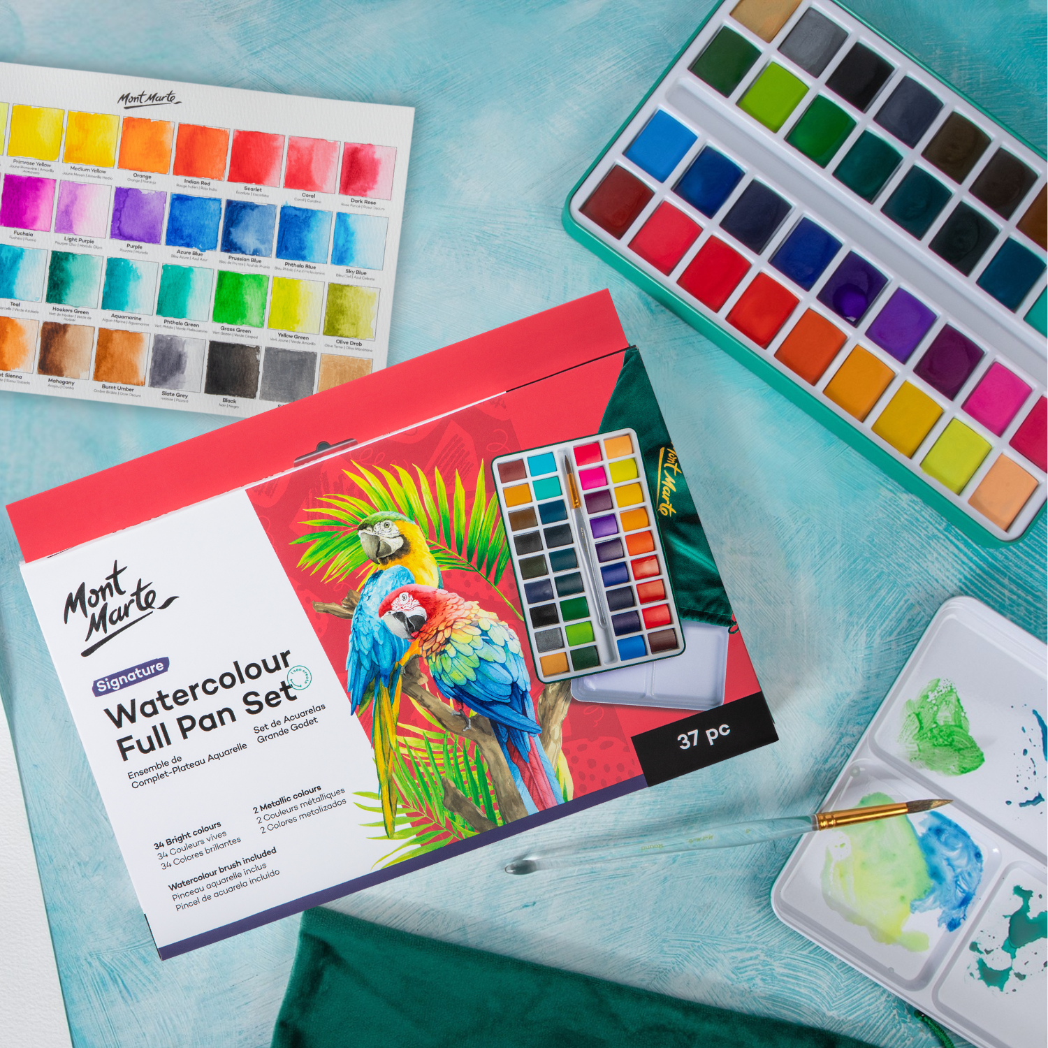 Mont Marte Signature Watercolour Full Pan Paint Set 37pc in Tin