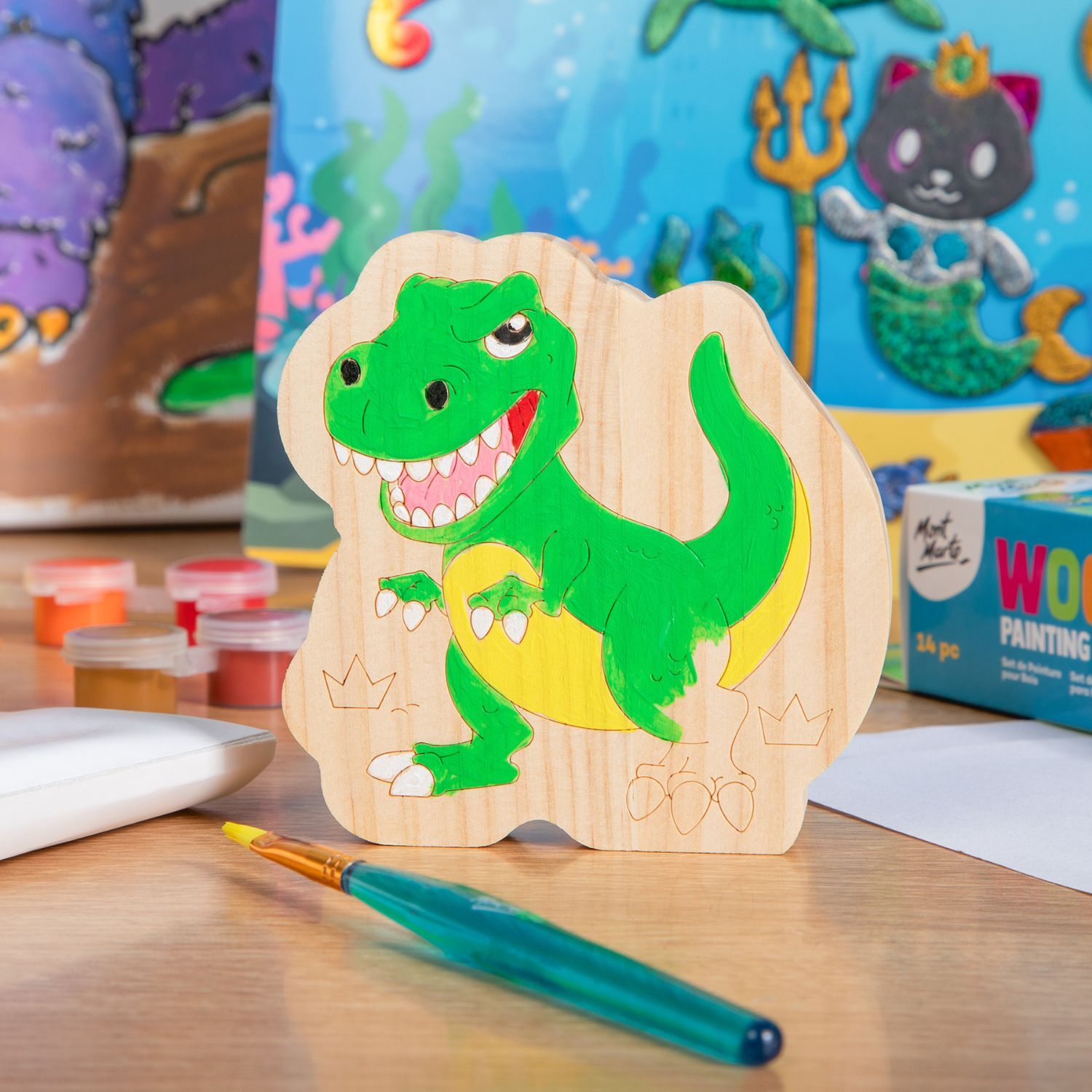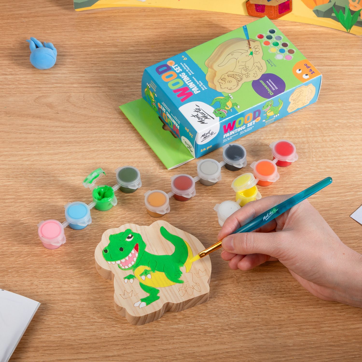 Mont Marte Wood Painting Set 14pc - Dinosaur