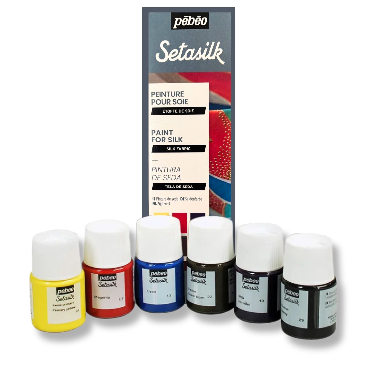 Pebeo Setasilk Fabic Paint is a decorative paint for silk fabrics. Experiment with hand-painting your own fabrics for home decor, dressmaking, for gifts or bags. Mostly suitable for light coloured fabrics, colours can be mixed and they have excellent lightfastness.