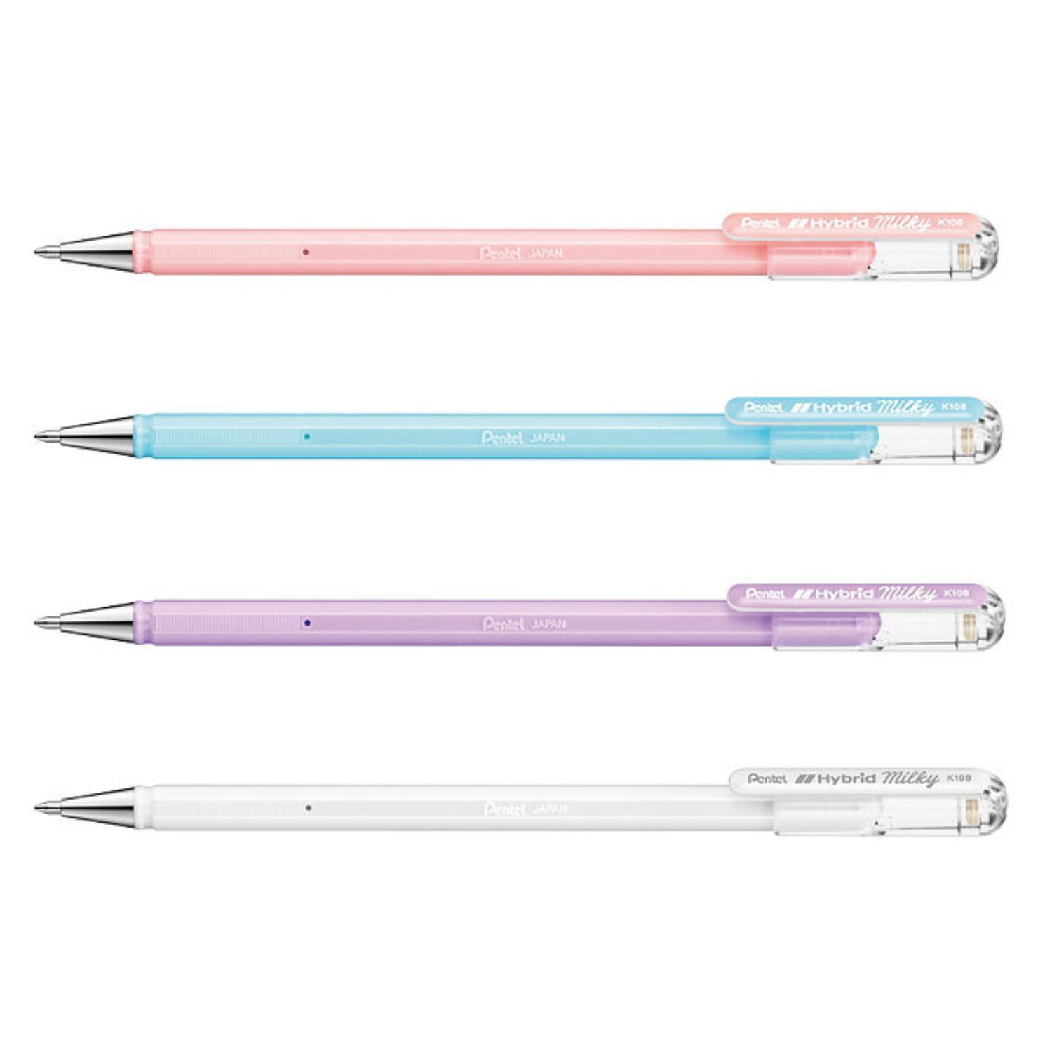 Pentel Hybrid Milky Pastel gel pens are the perfect pop of colour to add to your art stationary collection! High quality gel pens ideal for illustrations, scrapbooking, school work and decorating cards or photos. For artists and students of all levels.