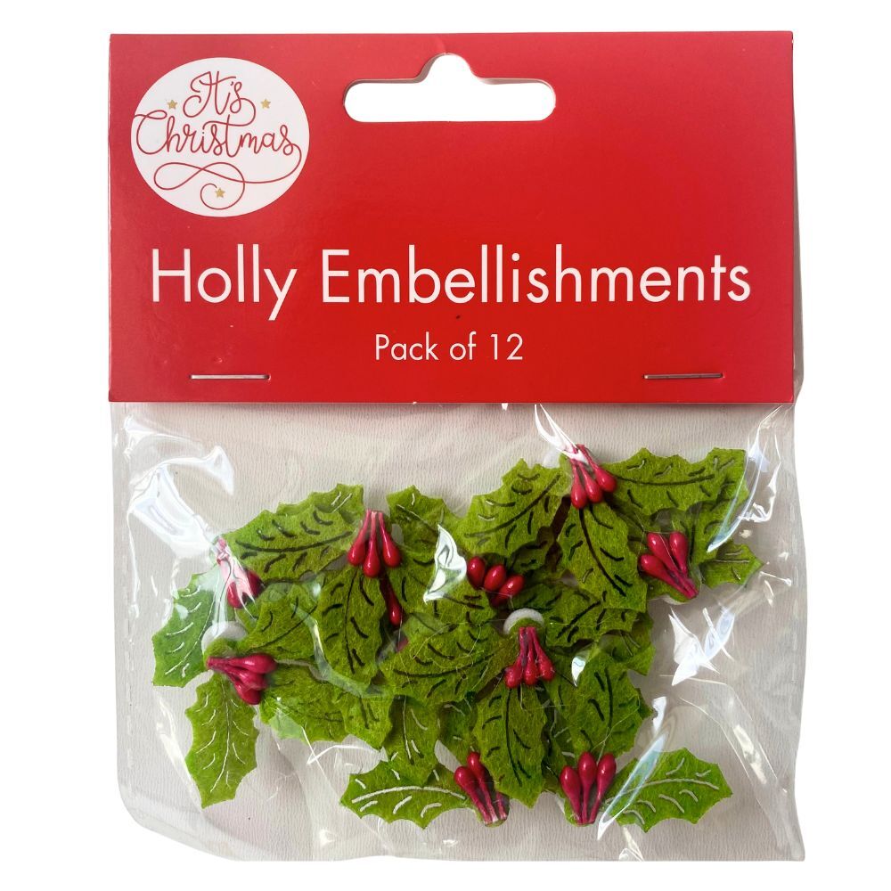 Portacraft Christmas Embellishments 12pc - Holly - 4cm
