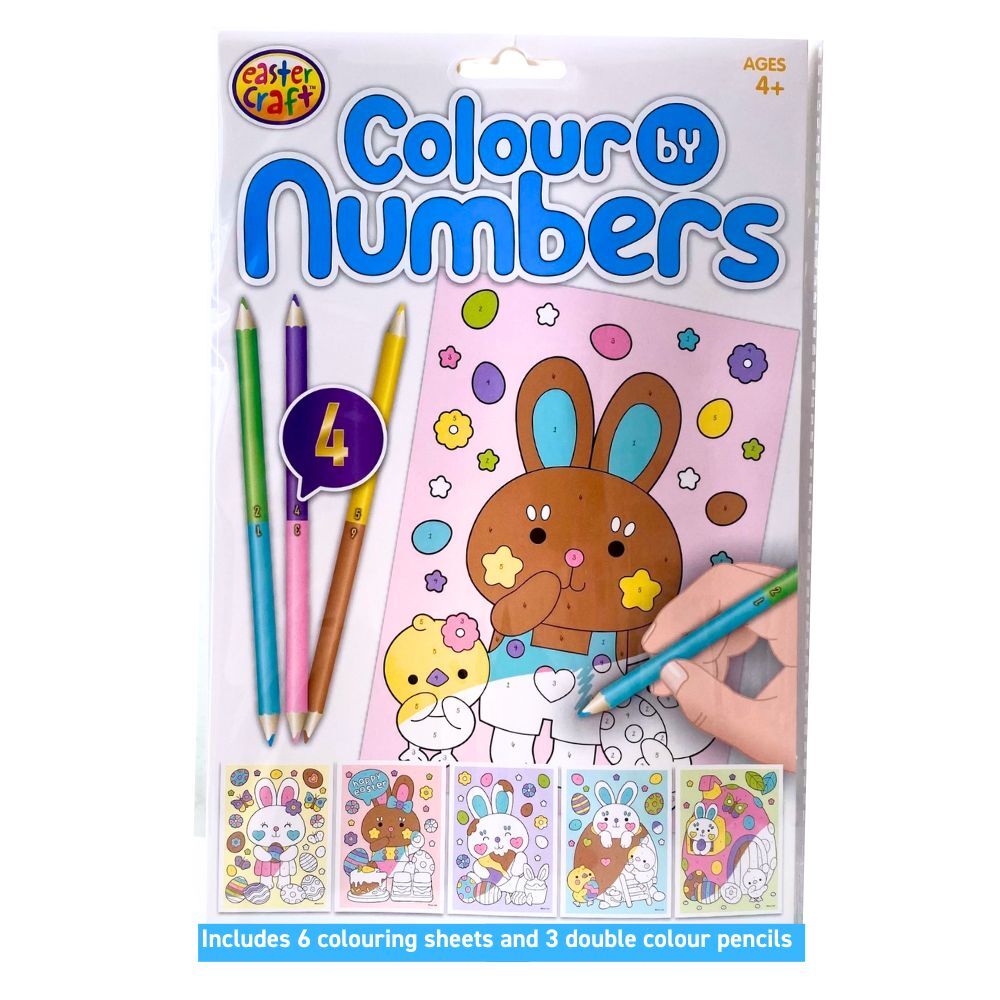 This Easter holiday activity will give the family hours of fun colouring in all the different numbered sections to create beautiful Easter art. With five exciting illustrations to complete, use the double ended pencils included, markers or crayons to colour in the Easter themed illustrations. Loads of arty fun while at home or on holiday.