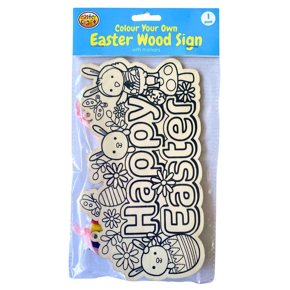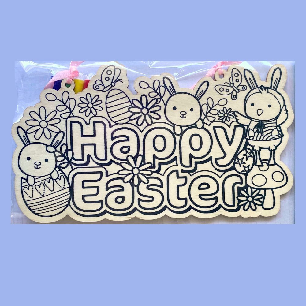 Let your junior artist join in the Easter decorating with this Printed Wooden Sign, ready to colour in and decorate.  Use the markers included, crayons or paints to colour. Finish decorating with glitter, beads, ribbons or stickers. Loads of arty fun while at home or on holiday this Easter.