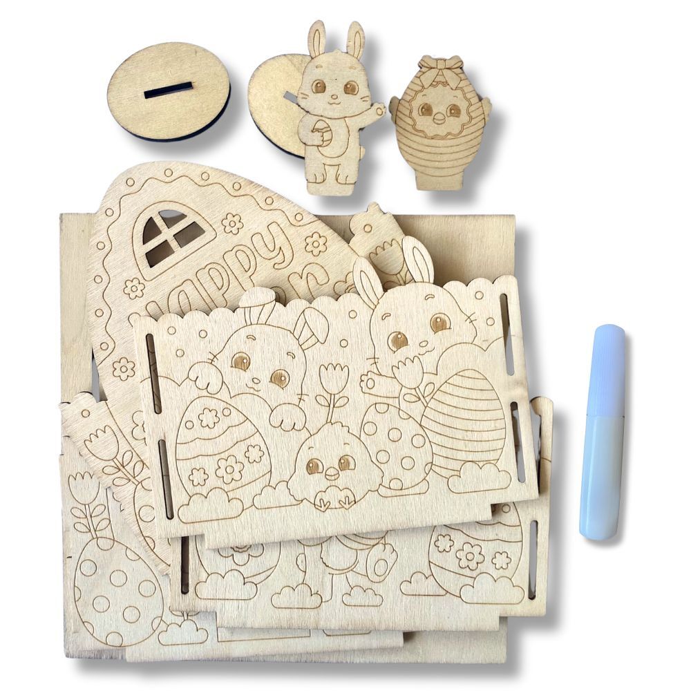 Make your very own wooden house for Easter holiday fun! This cute and exciting motif makes a unique Easter craft activity for kids, and adult-kids too!