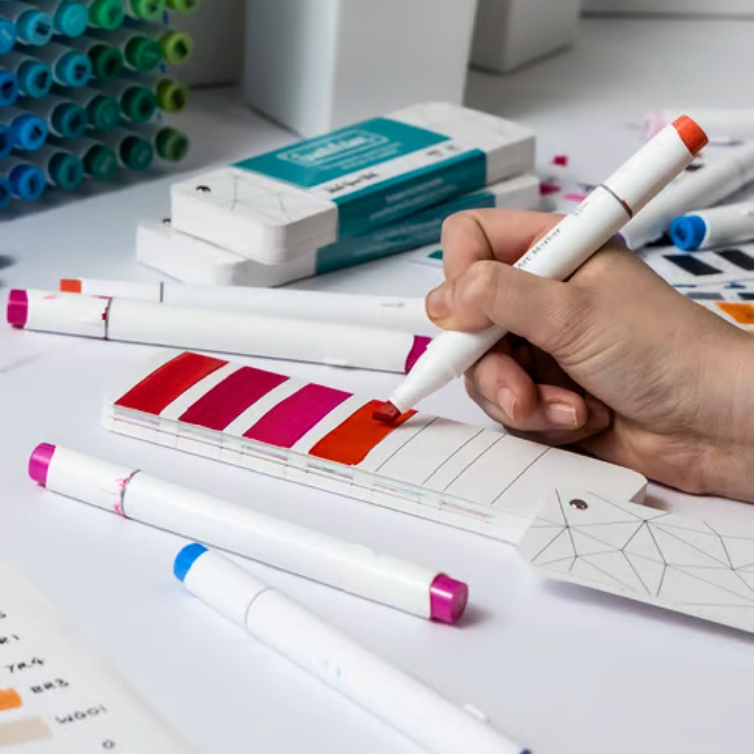 The 400gsm surface makes swatching fun and has been tested with 100s of brands of pencils, markers, and even watercolour paints.