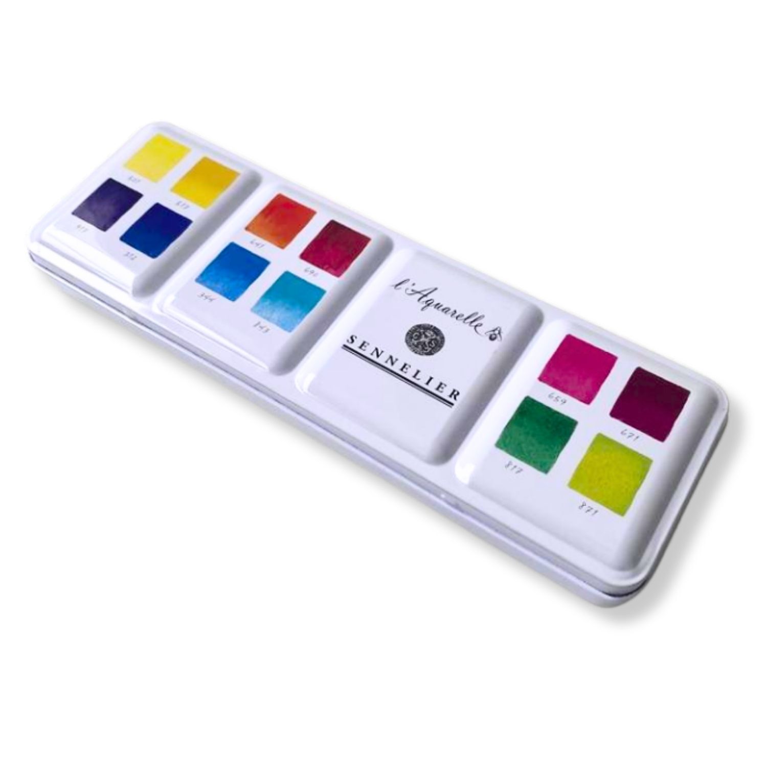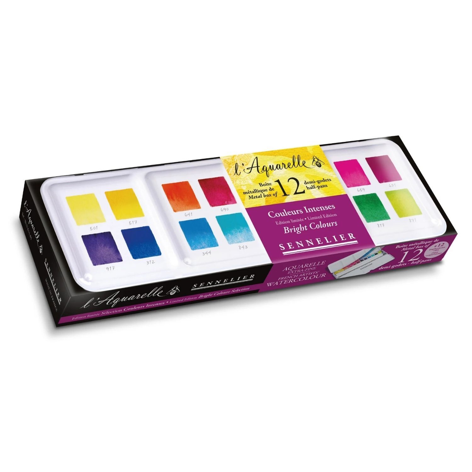 Sennelier Artist Quality Watercolour Half Pan Set of 12 – Bright Colour Selection
