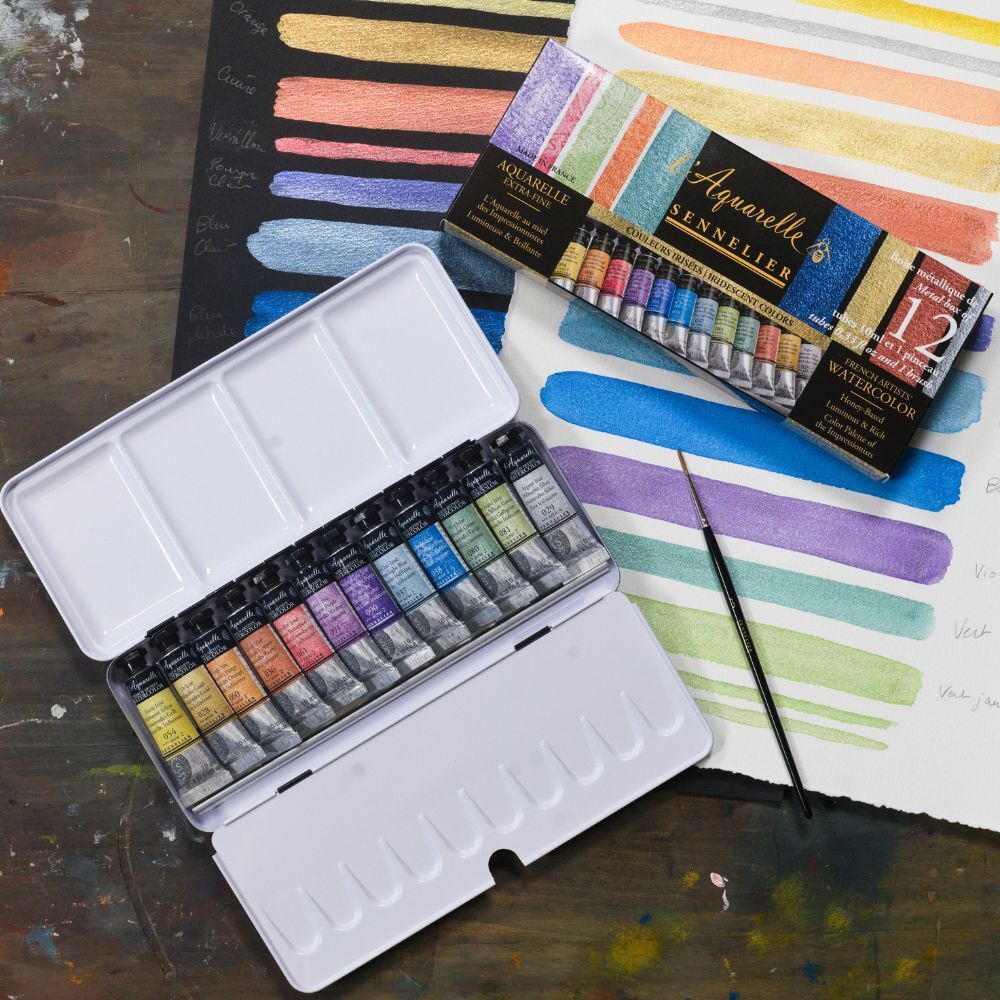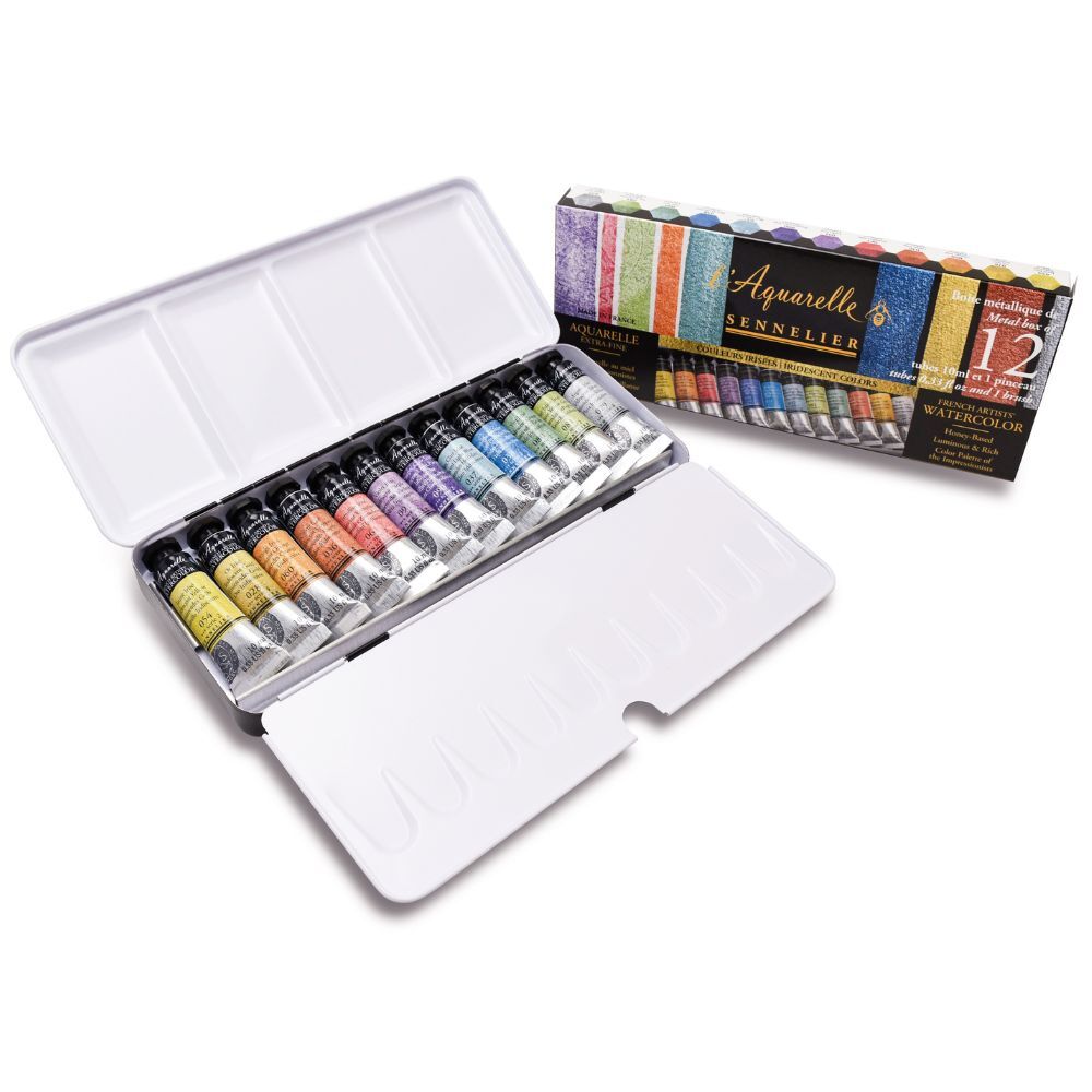 Sennelier Artist Quality Iridescent Watercolour Set 12 x 10ml Tubes - in a metal case