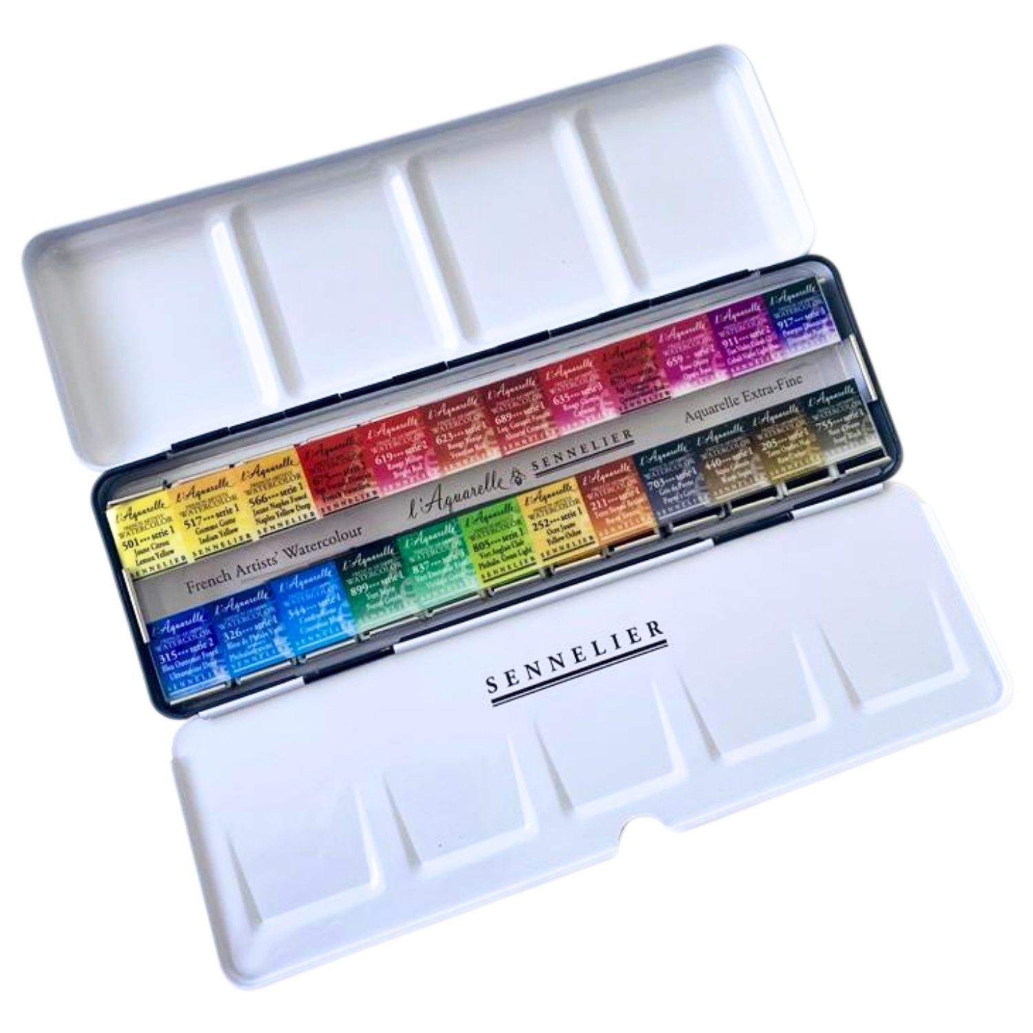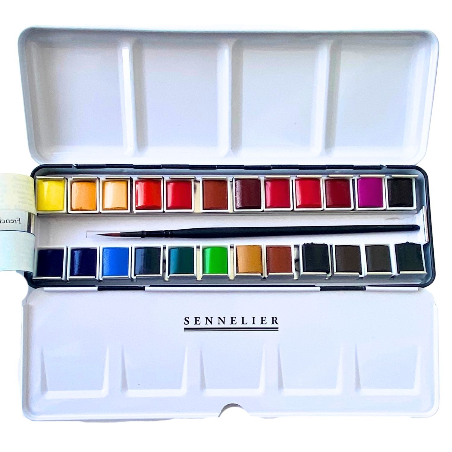 Sennelier Artist Quality Watercolour Metal Box – 12 Half Pans for Travel and Studio