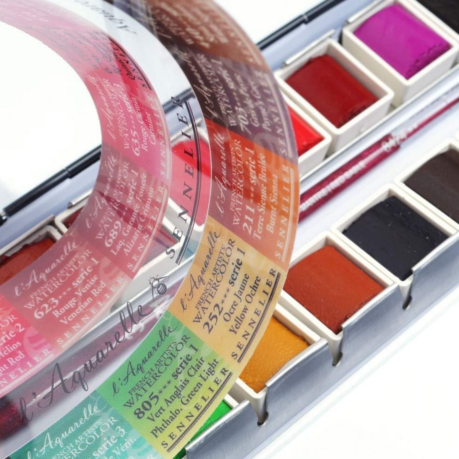 The metal box comes pre-filled with 12 carefully selected Sennelier half pans, nestled in a compact, durable design makes it ideal for studio use or painting on the go.